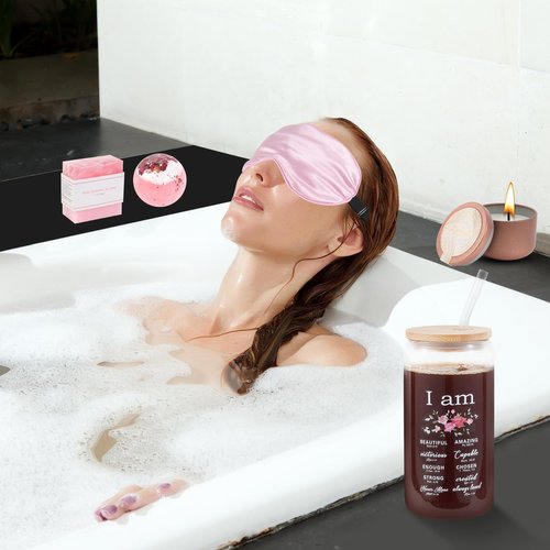- Amount of product: in this christian gifts set ,you will get in total of 1pcs can glass cup,1pcs makeup pouch cosmetic bag ,1pcs keychain,1 pcs bookmark,1pcs rose bath sall ball, 1pcs bluebell candle,1pair of socks,1pcs sleep mask,1pcs scrunchies hair tie,1pcs soap,1pcs greet card,which is designed in "you are"style,packaged in a beautiful gift box to be ready for gift giving, nice appreciation gift set for woman
