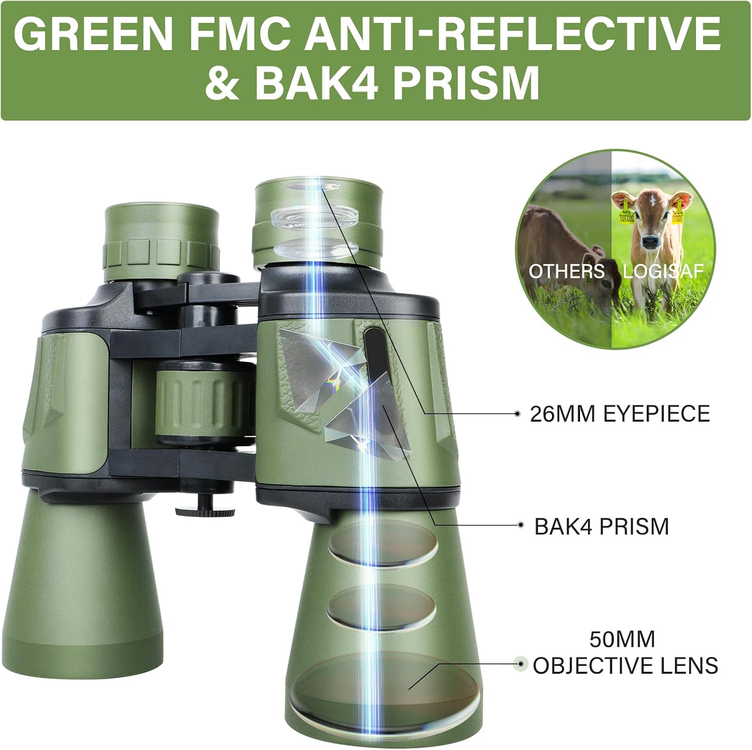 - FMC COATING & BAK4 PRISMS FOR LOW LIGHT VISION: Equipped with FMC anti-reflective coating and BAK4 prisms, these hunting binoculars maximize 98.4% light transmission. Enhanced low-light vision technology delivers sharp images at dusk, perfect for camping or stargazing adventures