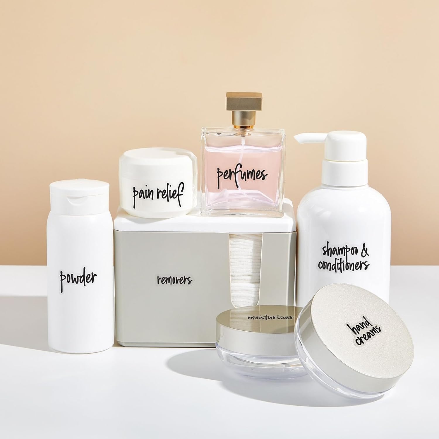 Organize your home with 192 clear labels preprinted with 184 bathroom and self-care essentials.