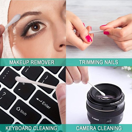 - SOFT & SAFETY:INDIVIDAULLY WRAPPED Cotton swabs have been sterilized by high temperature, no fluorescent agent, safety to use. The swabs end with enough cotton is highly absorbent. Swabs handle made of recycle paper can reduce waste of energy. Good for personal care and cosmetics.