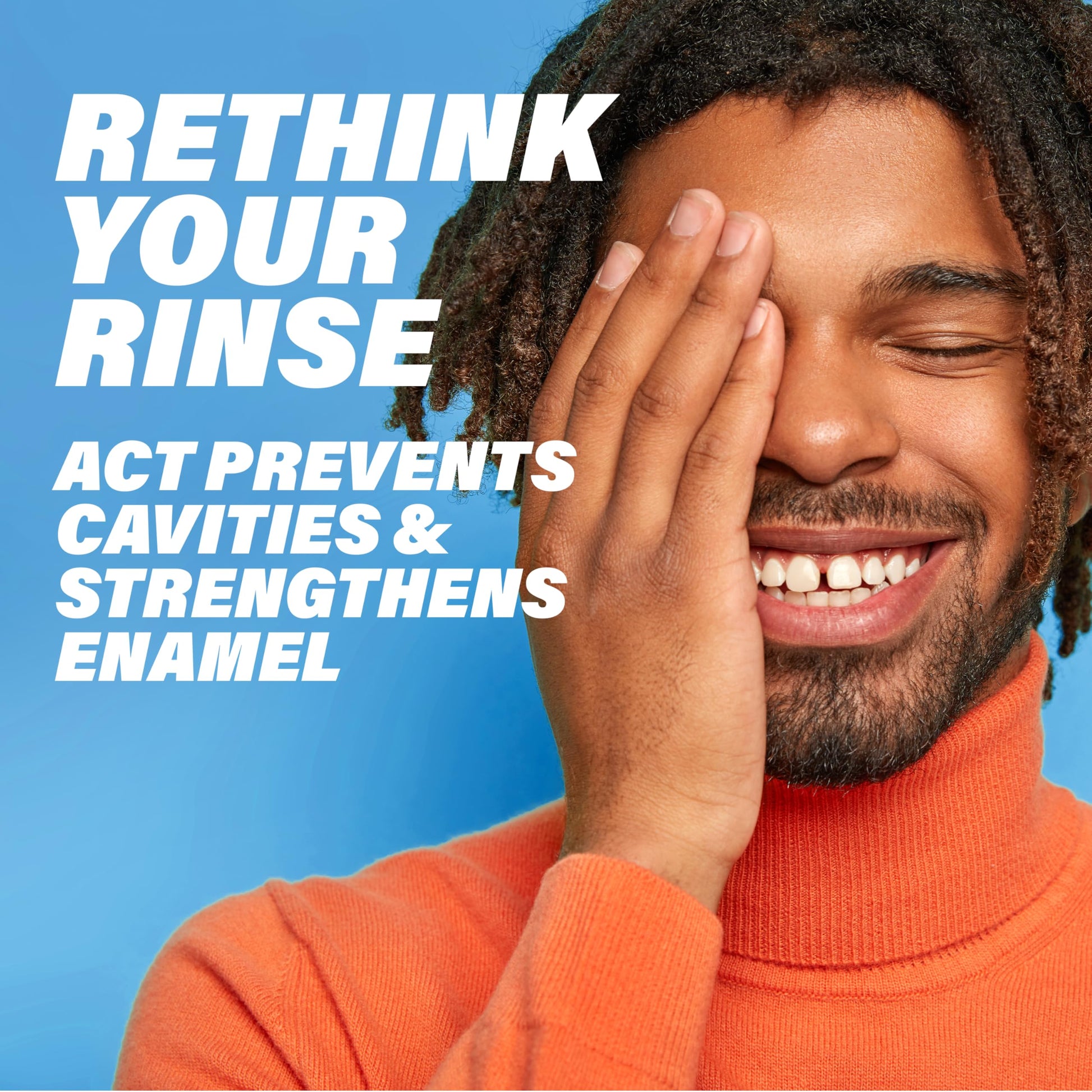 Details: Start ACTing to help prevent cavities, strengthen teeth, freshen breath and kill bad breath germs. ACT Total Care Zero Alcohol Anticavity Fluoride Mouthwash Fresh Mint is formulated to improve your oral hygiene routine and freshen breath. This ACT Total Care Mouthwash is an alcohol-free mouthwash. Also try ACT Total Care Icy Clean Mint (contains 11% alcohol). When it comes to happy smiles, trust the No. 1 dentist recommended fluoride brand*. *Among mouth rinses.