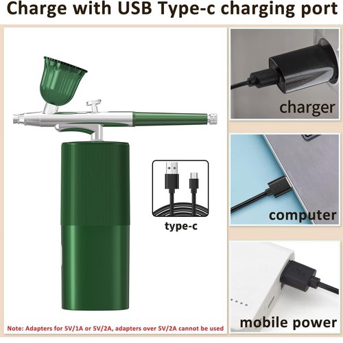 - 【Auto Airbrush And USB Charging】When you have assembled the gun and loaded the liquid, you only need to turn on the switch of the gun to automatically spray, which is very simple to use. We use a good quality battery that will last you a long time after you charge it.