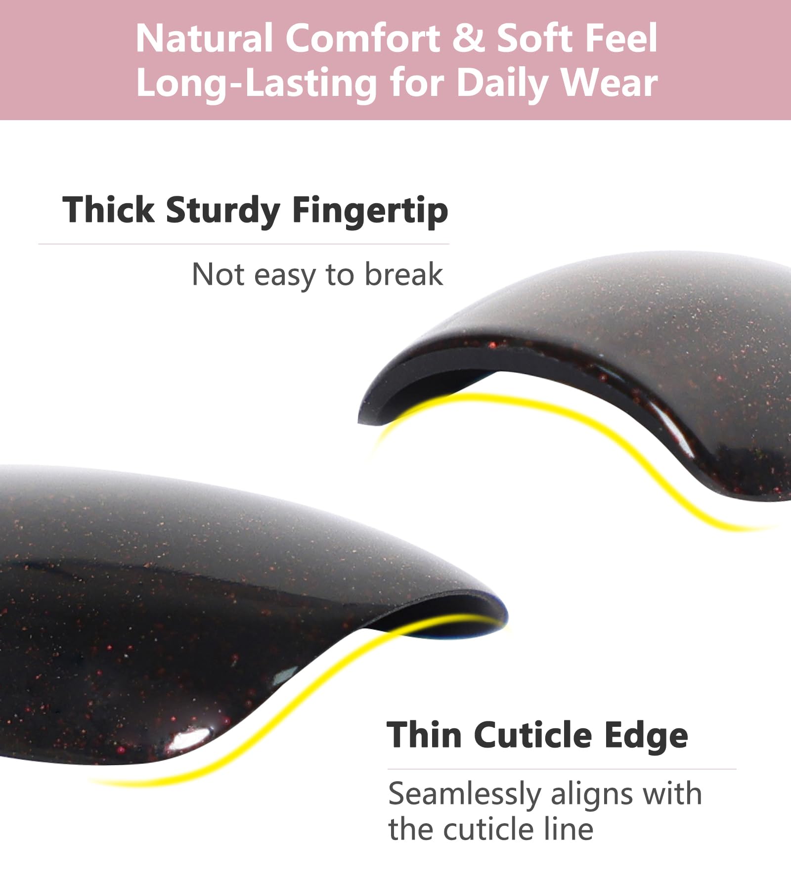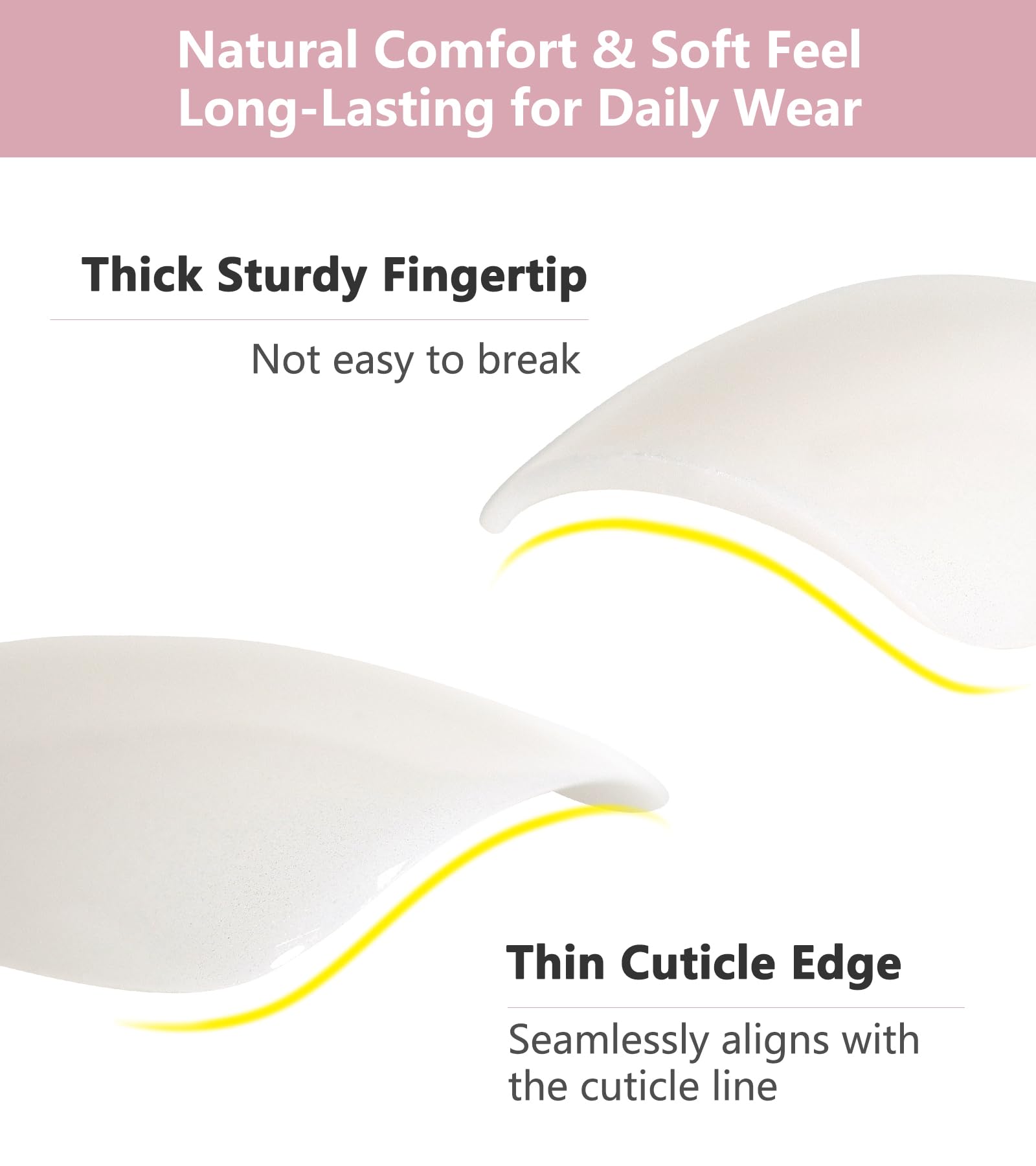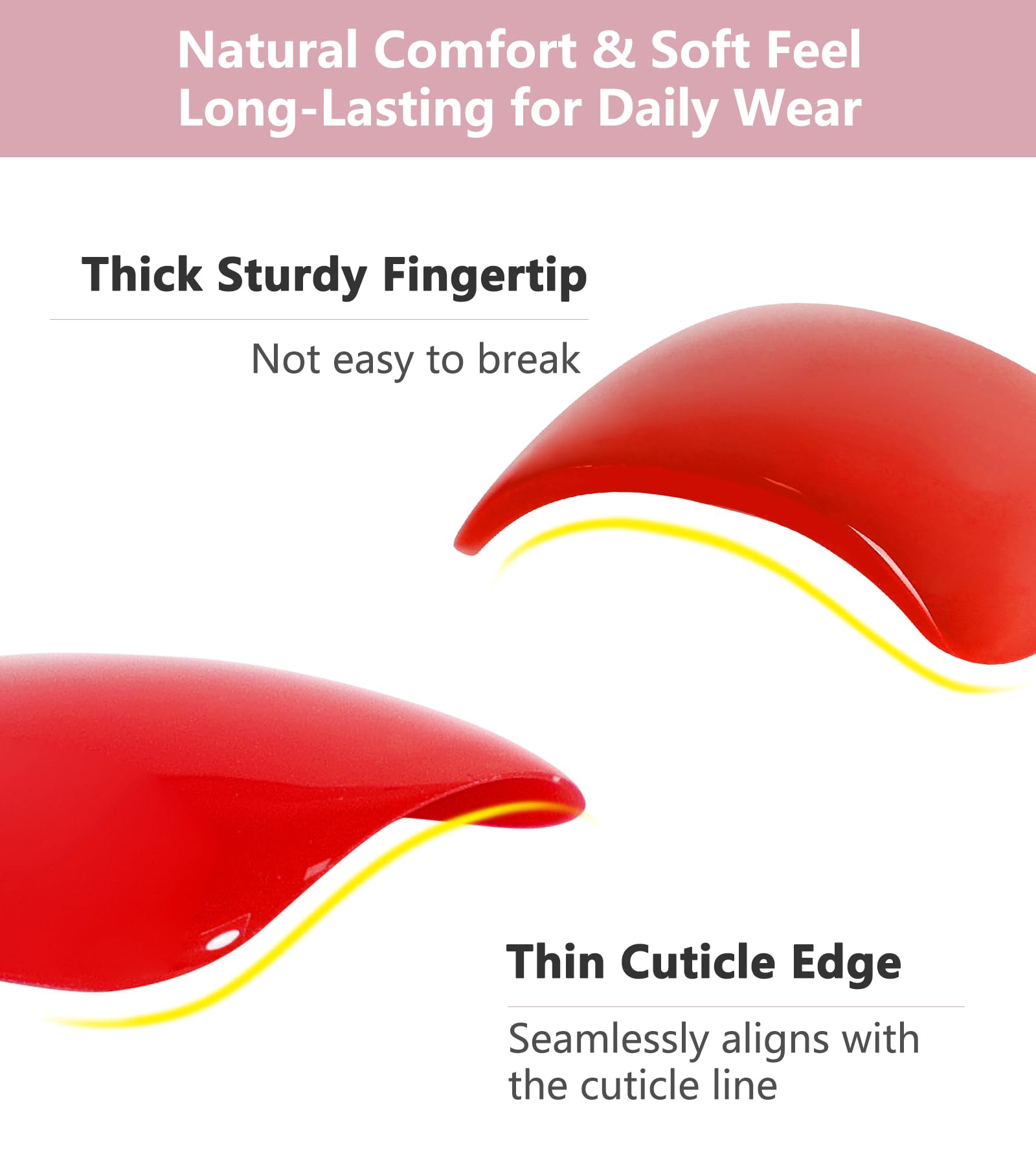 - Reusable: Upgrades tougher materials, soft and thick, to avoid crack or bend. If properly cared for, the short nails kit can withstand more than 3 weeks of wear. Long-lasting fake nails are sturdy and comfortable