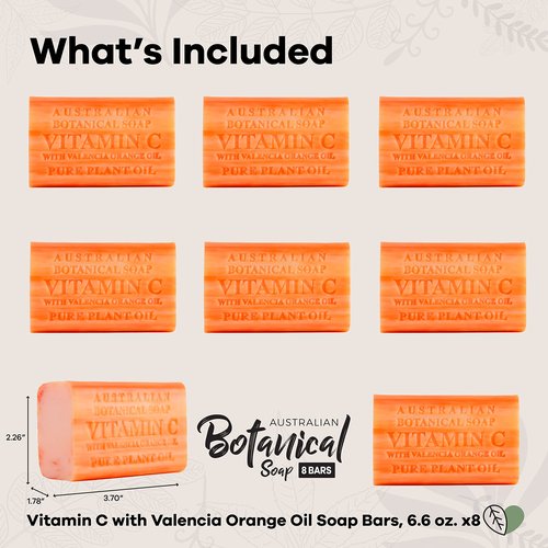 Australian Botanical Soap, 6.6 OZ, Vitamin C and Valencia Orange, Triple Milled Bars made with a Natural Soap Base and Enriched with Organic Shea Butter, Pack of 8