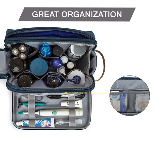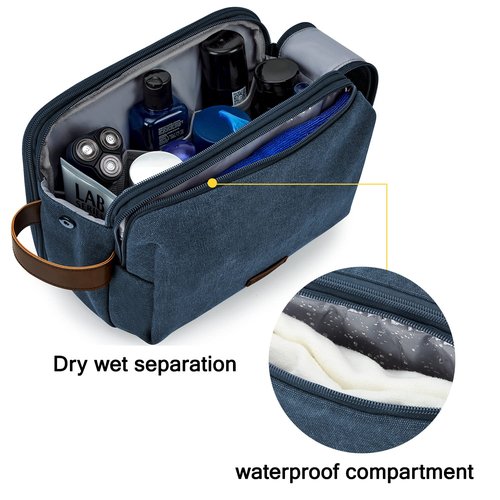 BAGSMART Toiletry Bag for Men, Canvas Travel Toiletry Organizer Dopp Kit Water-resistant Shaving Bag for Toiletries Accessories,Navy Blue-Large