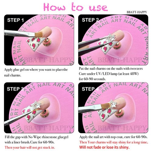 - Easy to Use :You just need to cleaning the surface of the nail, applying a primer, then putting charms on the nail, finally applying a layer of primer to prevent it from falling off, you will get a shiny manicure.BBATT-HAPPY