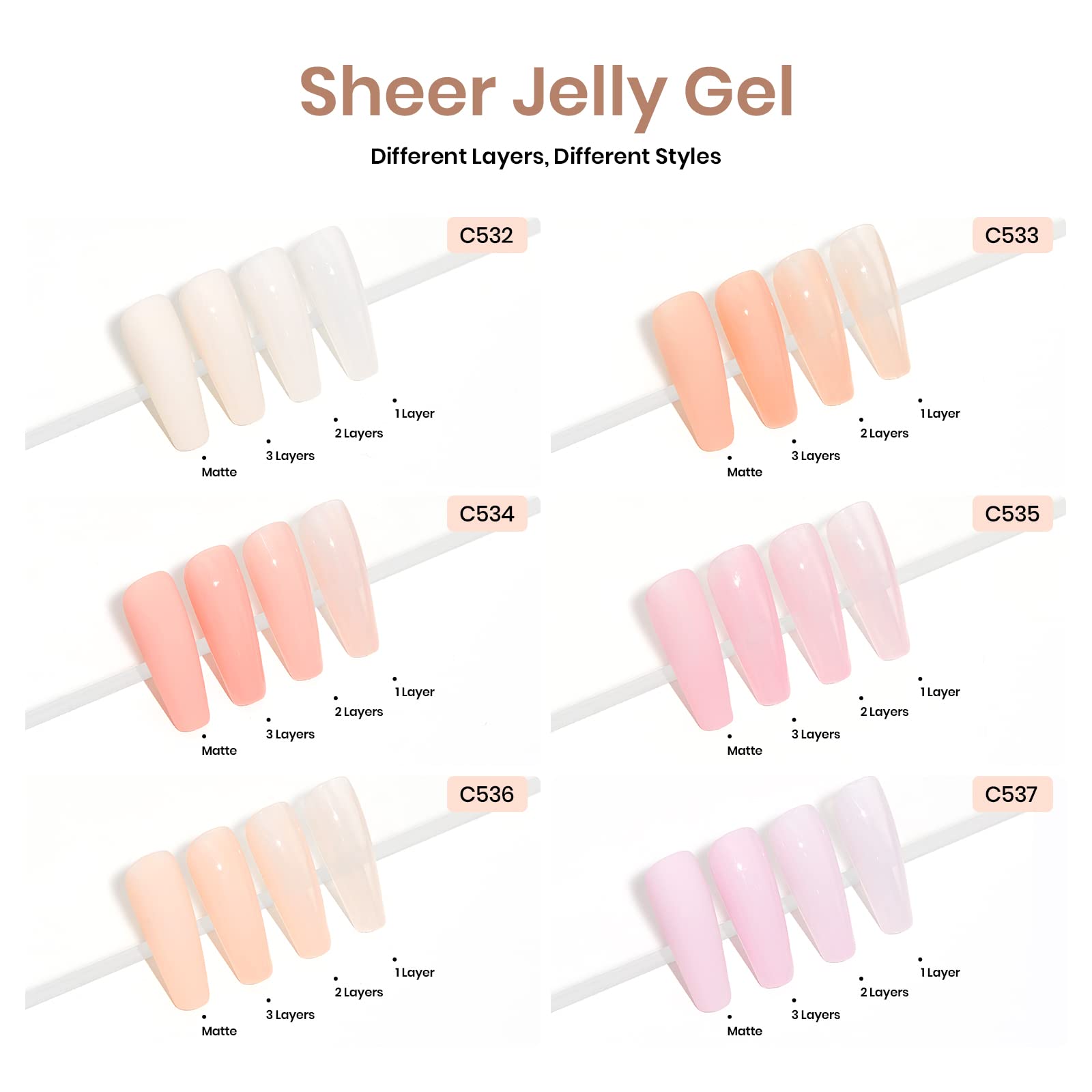 - 【Beetles Jelly Gel Nail Polish】We have put together the top 6 trendiest new colors of jelly gel nail polish for the year 2025! We studied the upcoming color trends closely so you could display a colorful, stylish, modern manicure every time for the holidays! This transparent jelly color gel is perfect for nail lovers with different skin tones. These nude pink gel can be used to create various nail styles, such as French nails and swirl nails.