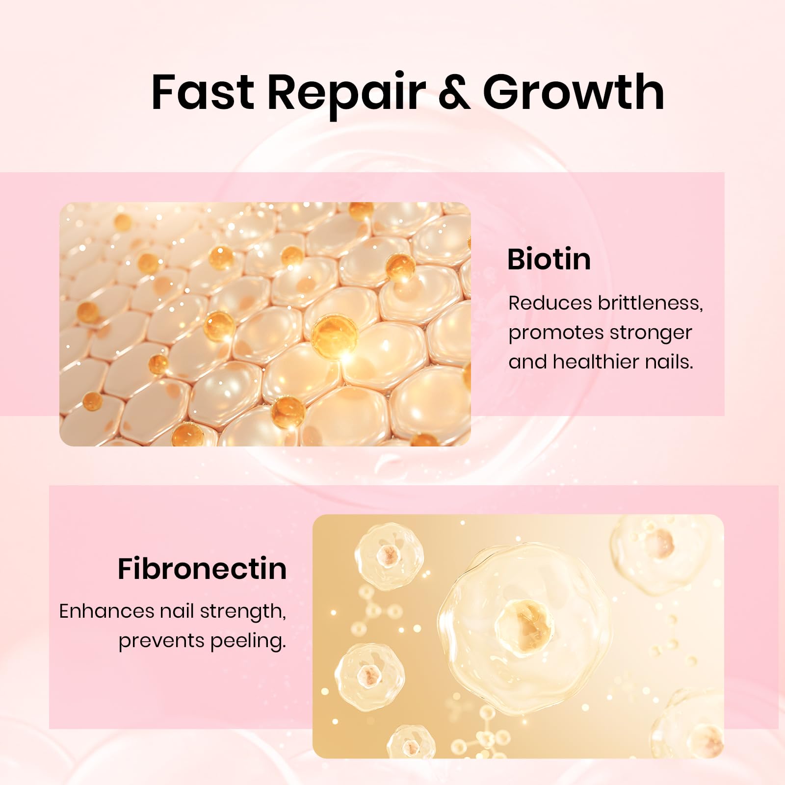 - Upgrade Nail Growth Treatment: Nail strengthener protein nail polish with a natural fruit fragrance (no volatile ingredients to stimulate the smell) . New formula, No UV light curing needed, 2~4 minutes natural air drying, reduce UV damage.
