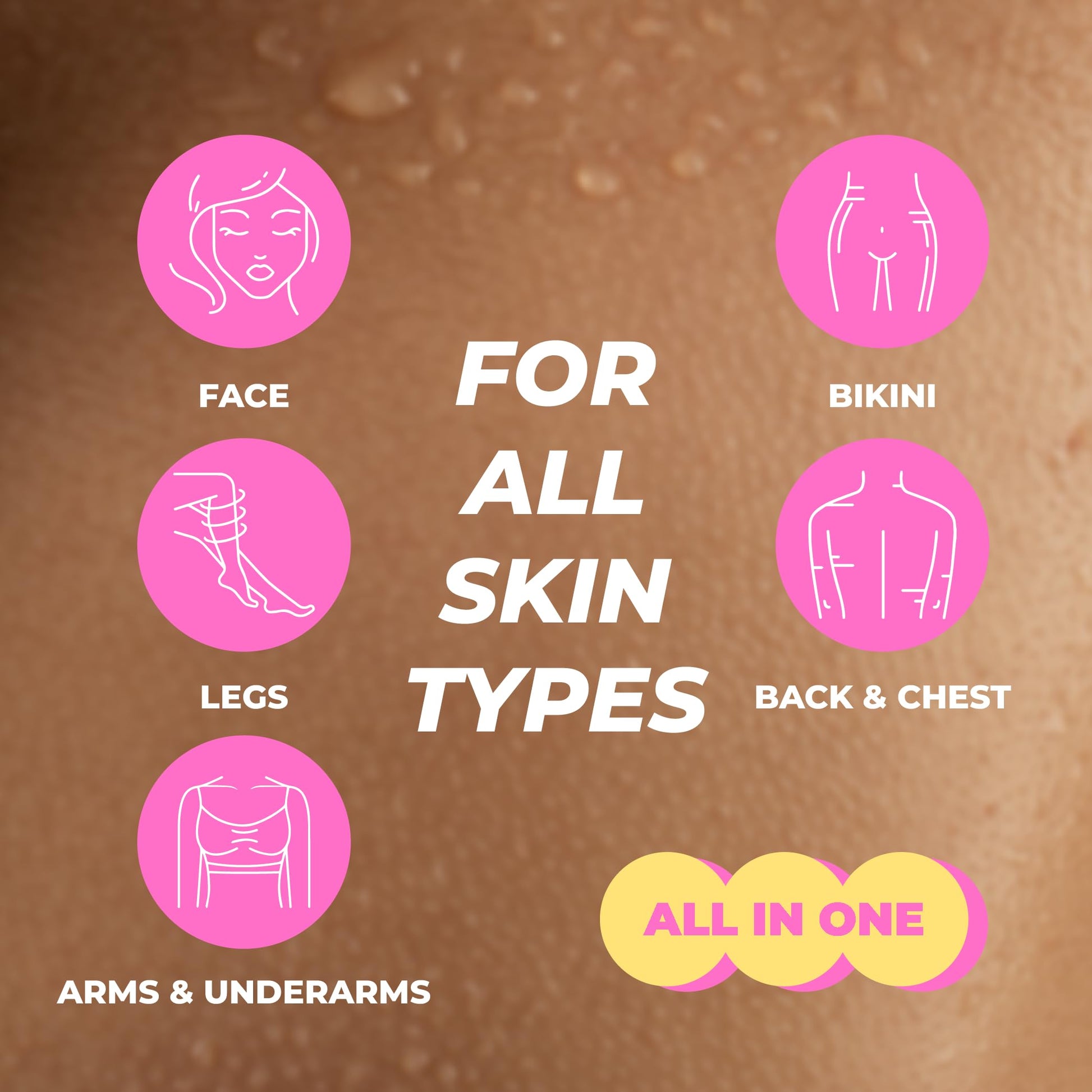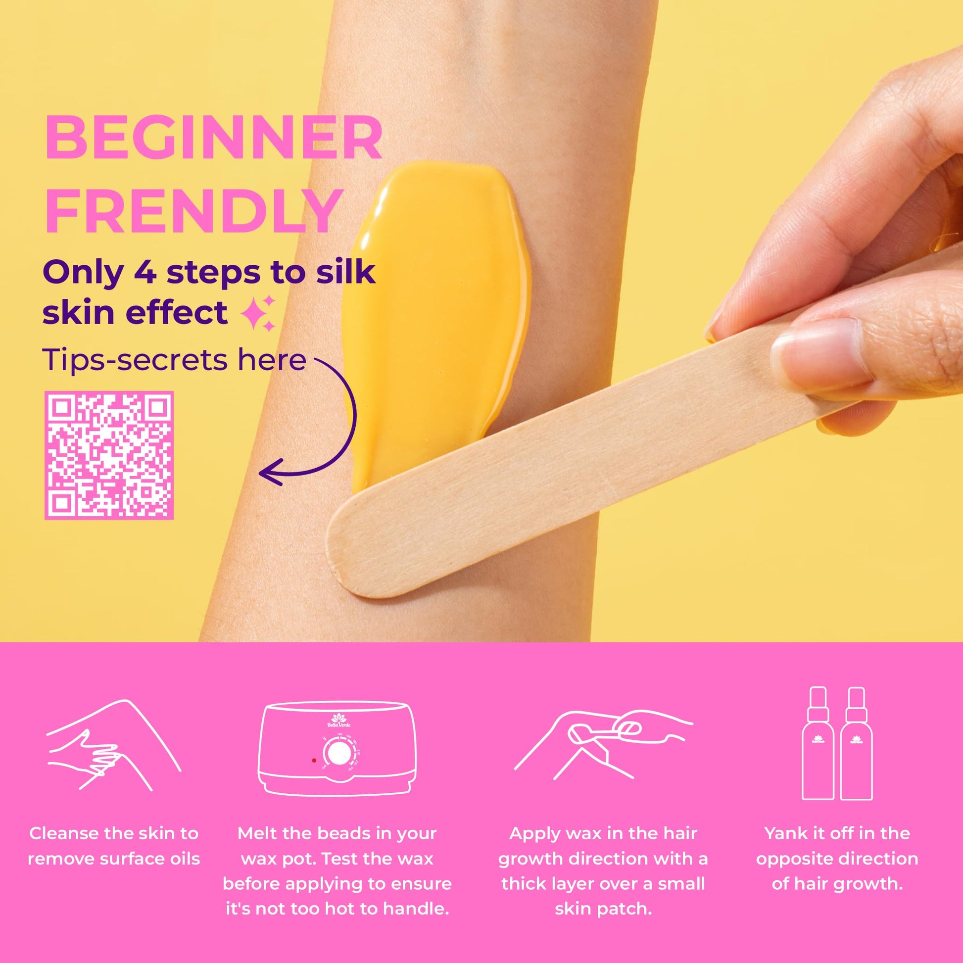 - Versatile - Wax beads can be applied to all types of skin and are equally suitable for legs, underarms, bikini and Brazilian, facial area, eyebrow, nose, upper lip depilation for both - women and men!