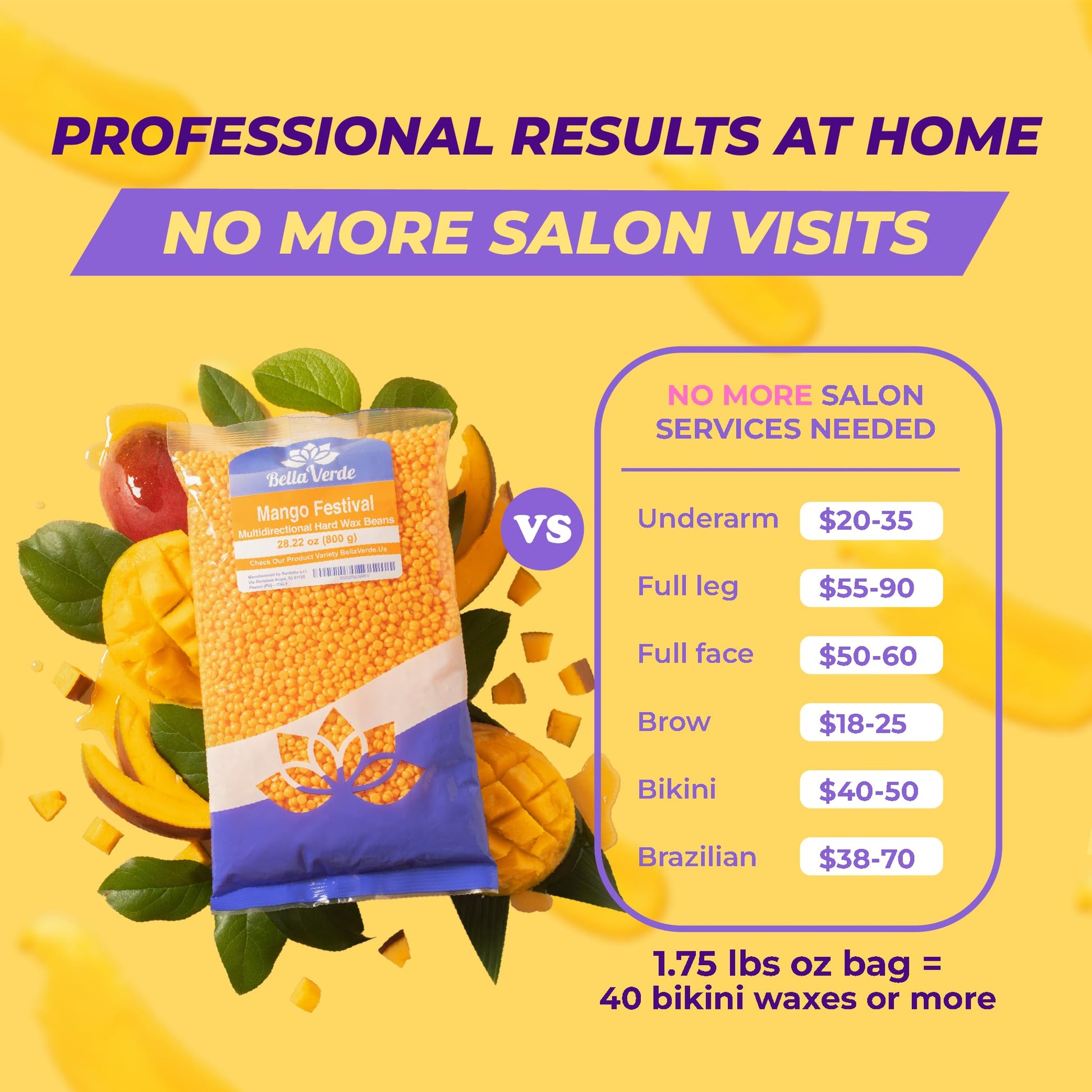 Bella Verde Hard Wax Beads for Hair Removal 1.76 Pounds - Waxing Beads - Mango Bikini Brazilian Wax Beads - Facial Body Wax Beads - for Sensitive Skin