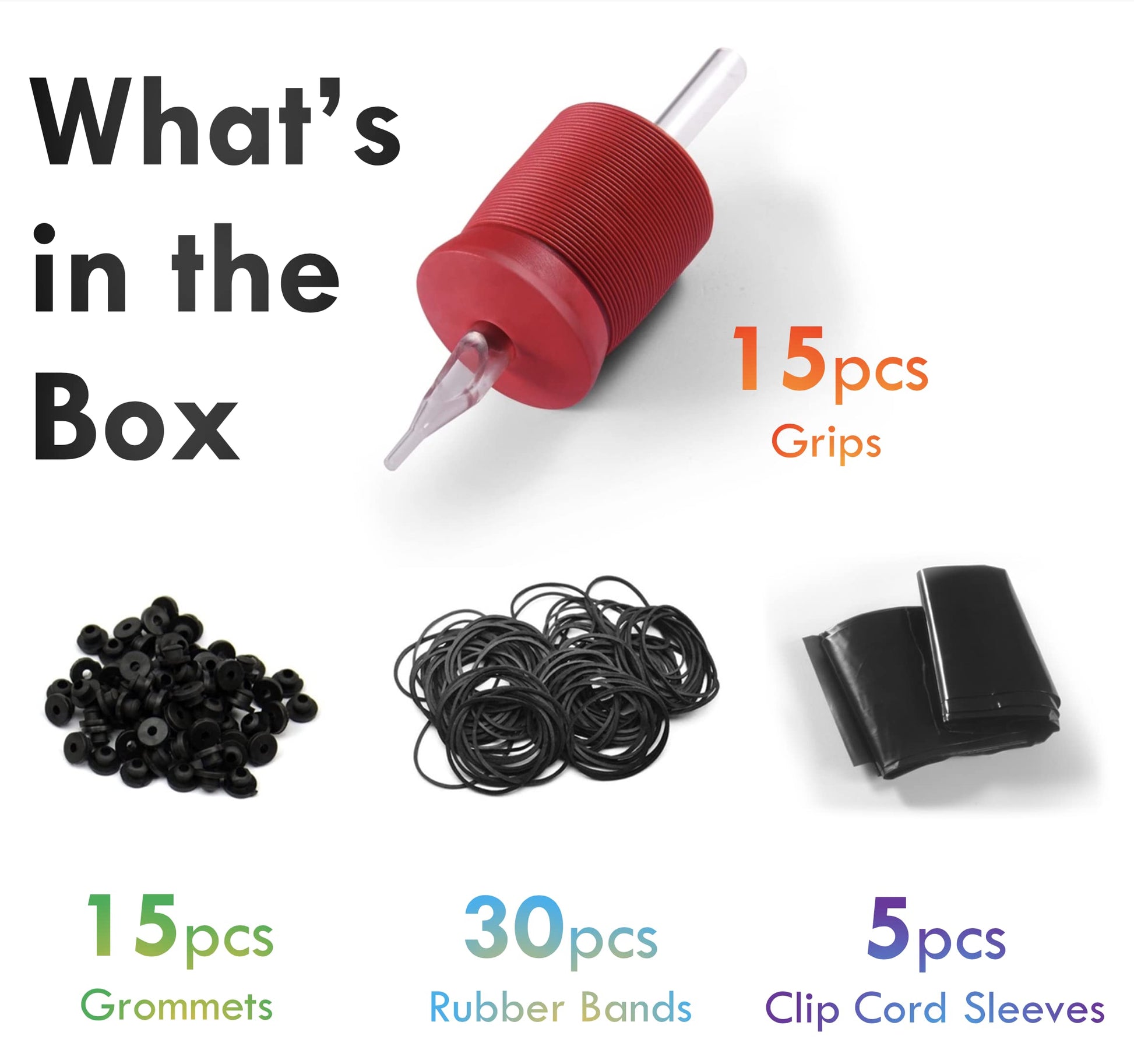 - ✅ Includes 15 individually packaged grip tubes for single use only, 30 rubber bands, 15 rubber grommets, and 5 clipcord sleeves.