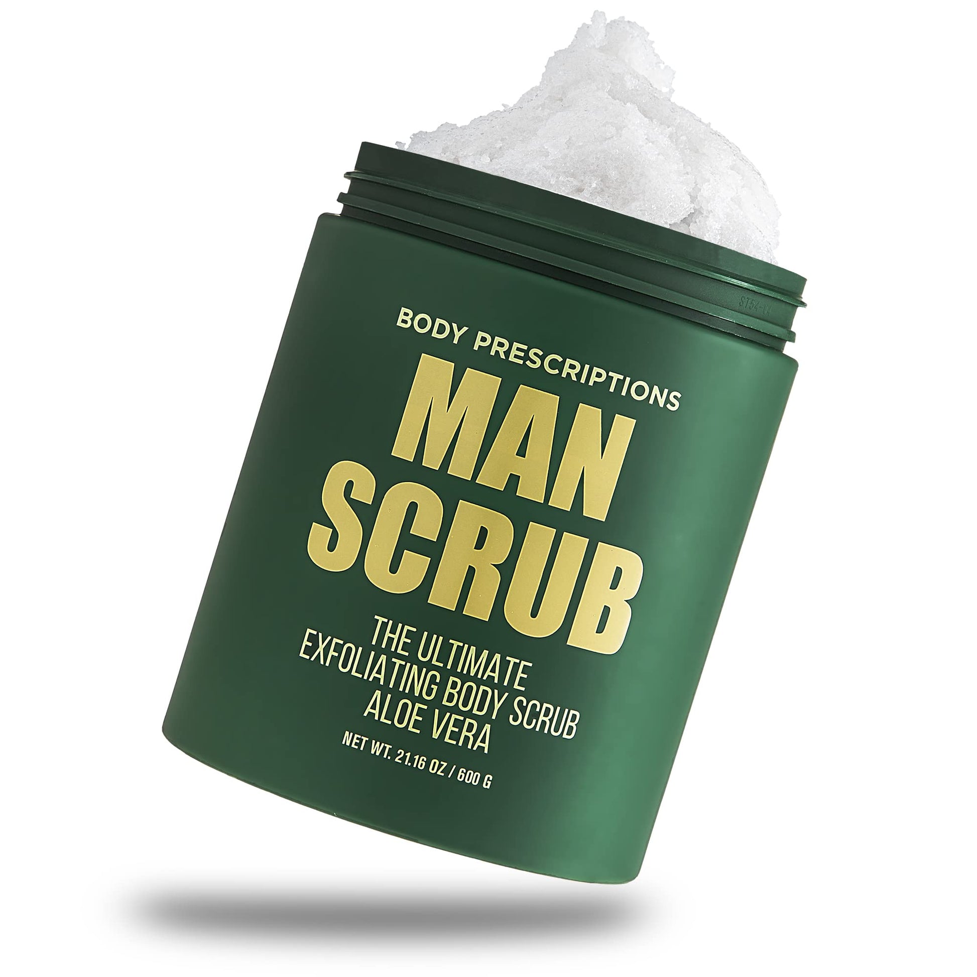 Body Prescriptions Men’s Exfoliating Body Scrub – Ultimate Skin Cleansing Wash in Jar with Twist-Top Lid, For All Skin Types, 21 Ounce (Pack of 4), Aloe Vera