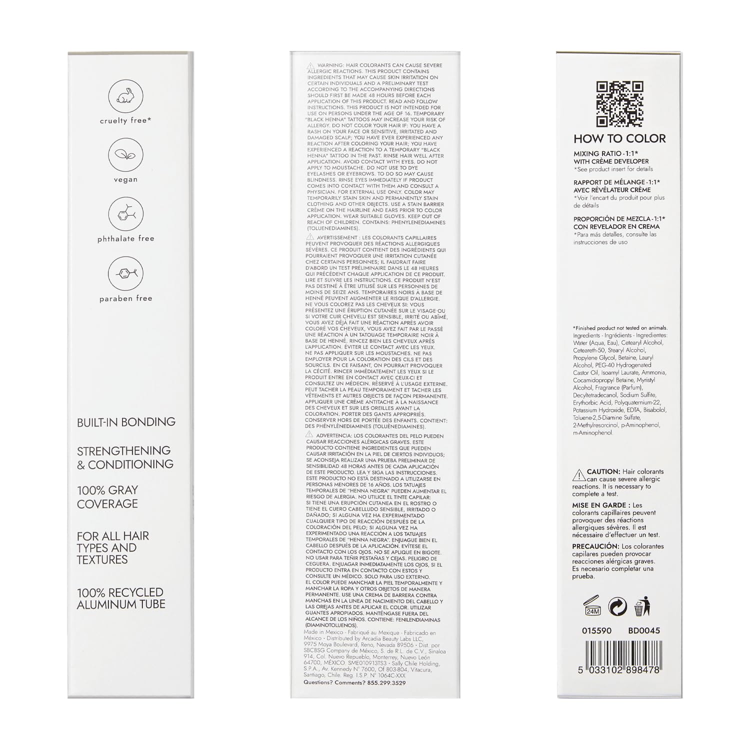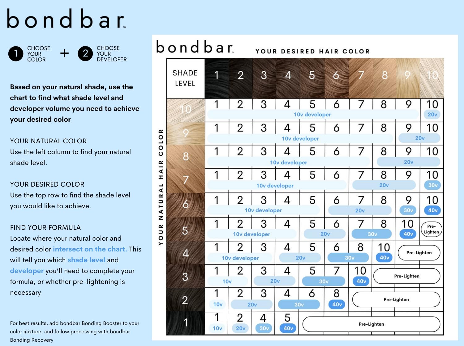 Details: bondbar is a bond building repair system that helps to protect strengthen and hydrate hair. bondbar Permanent Creme Hair Color provides a range of shades with built-in bonding for a new level of strengthening and conditioning during the hair color process while providing 100% gray coverage. This line is formulated to be Vegan Cruelty-Free* Phthalate-Free Paraben-Free Mineral Oil-Free Petrolatum-Free and Gluten-Free. Paper packaging can be recycled and color tube is made with 100% recycled aluminum with a cap made from 100% recycled materials. Using a regimen of bondbar Color bondbar Bonding Booster and Bonding Recovery provides up to 53% less breakage compared to standard color. For best results use with bondbar Creme Developer at a 1:1 ratio. *Final product not tested on animals.