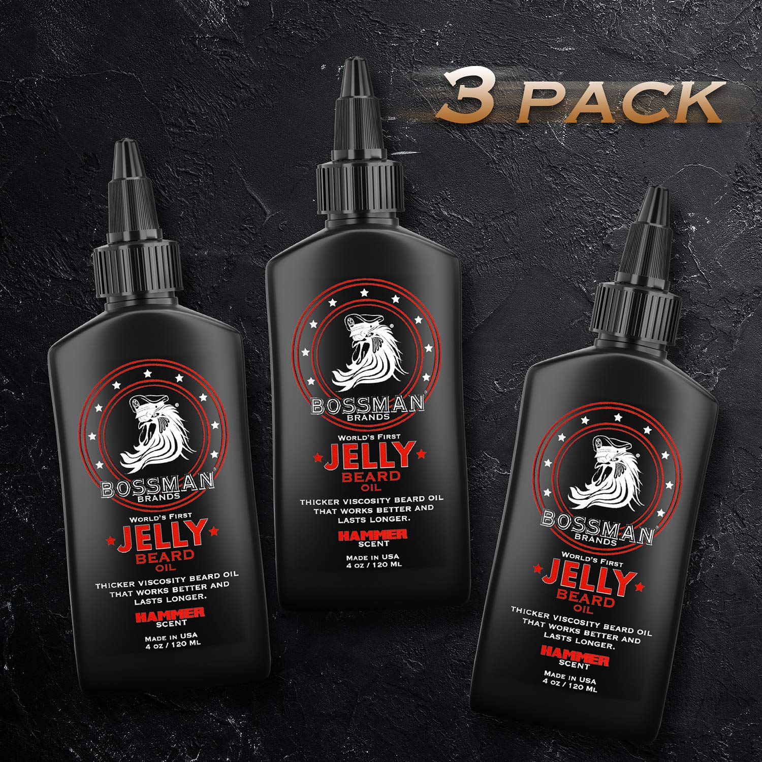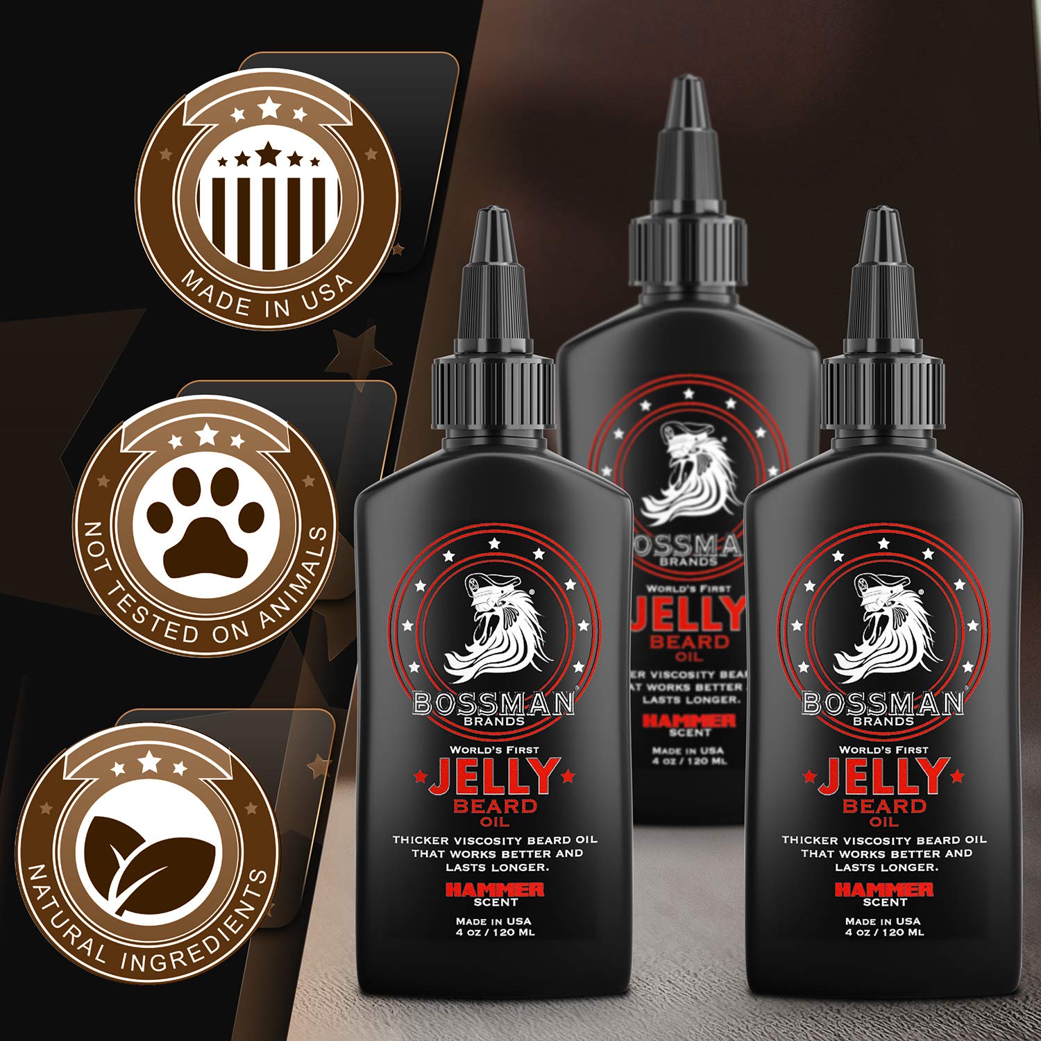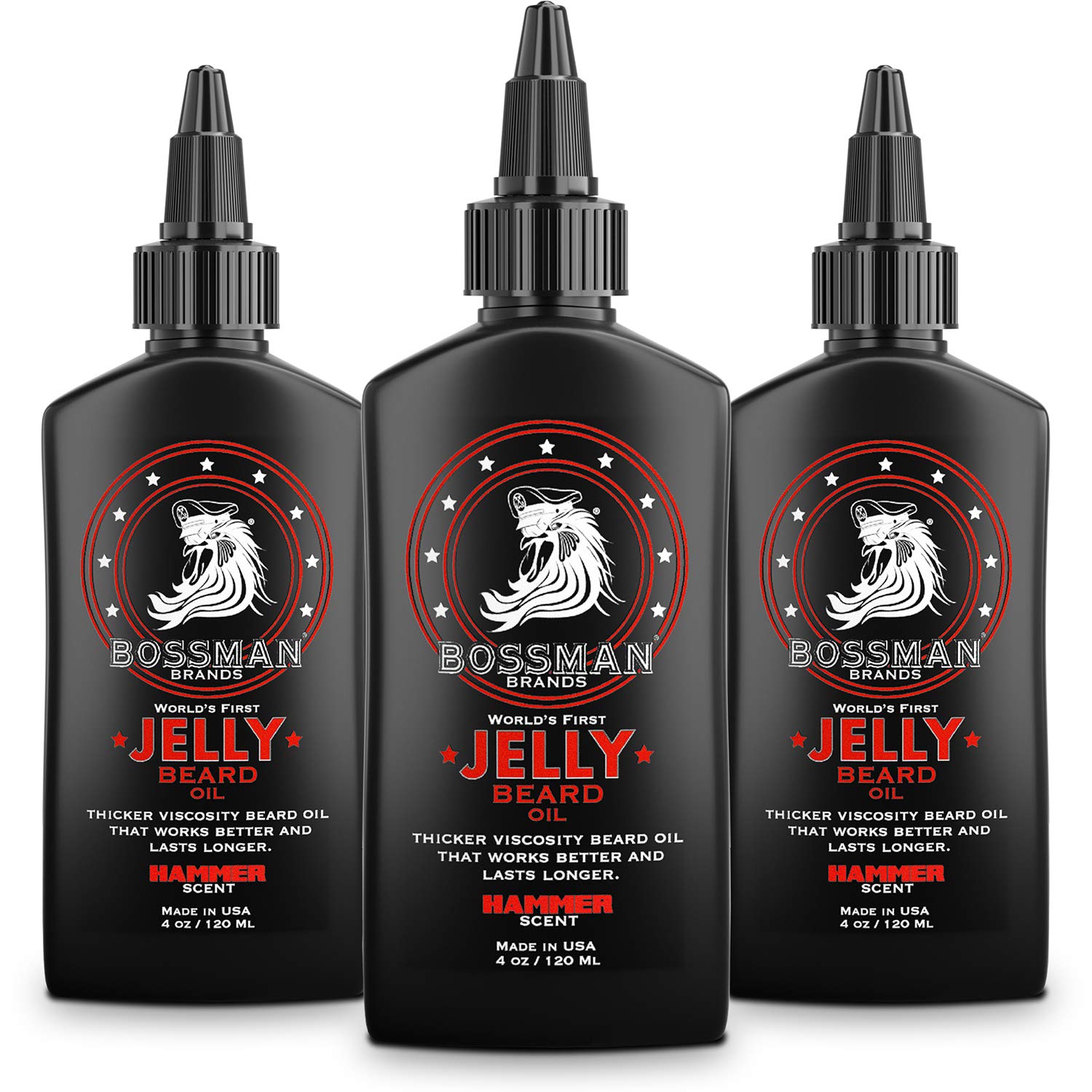 Bossman Jelly Beard Oil for Men - 3 Pack (12 oz in Total, Hammer Scent) – Softens, Moisturizes & Conditions with Natural Ingredients