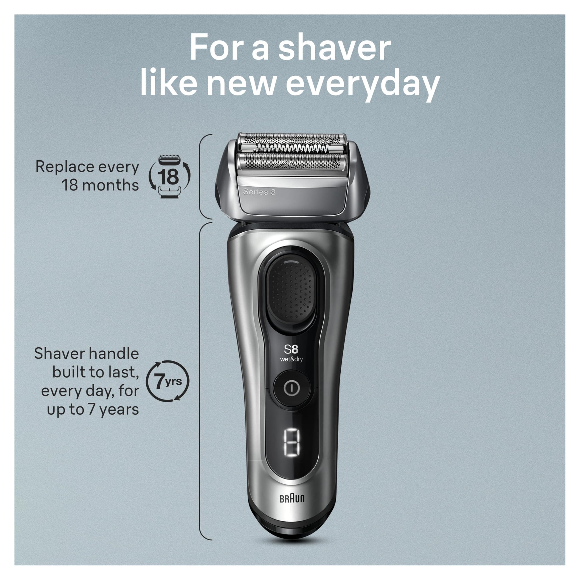 Braun Series 8 Electric Razor for Men, with 4+1 Shaving Elements & Precision Long Hair Trimmer, Close & Gentle Even on Dense Beards, Wet & Dry Electric Razor with 60min Runtime, 8517s Galvano Silver