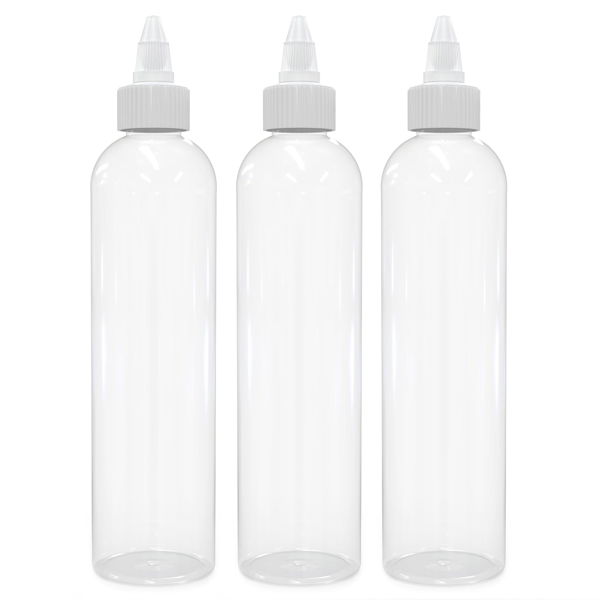 BRIGHTFROM Twist Top Applicator Bottles, 8 OZ Crystal Clear, Squeeze Empty Plastic Bottles, BPA-Free, PET, Refillable, Open/Close Nozzle - Multi Purpose (Pack of 3)