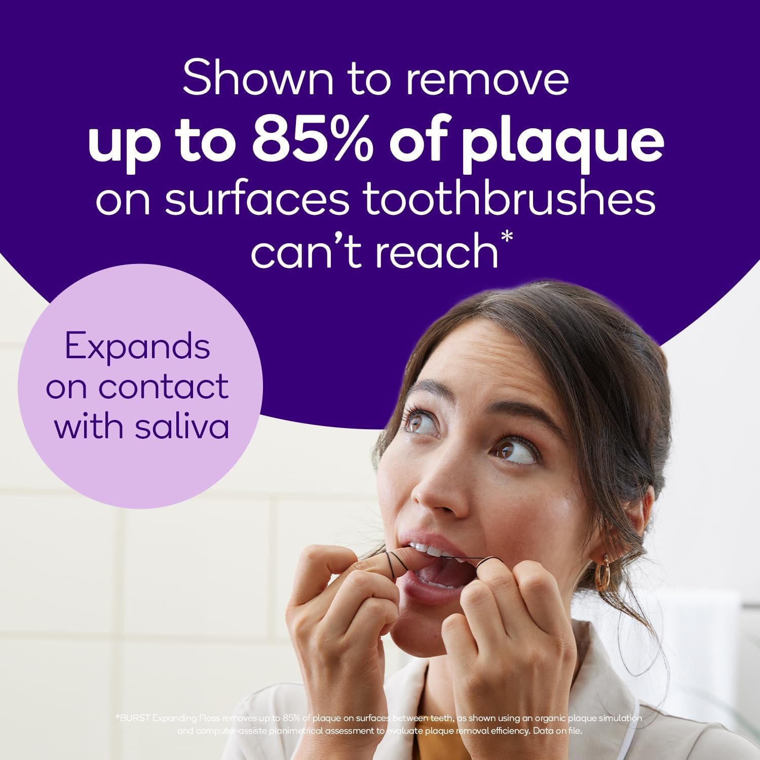 Details: BURST Expanding Dental Floss - Parent - Stain-Absorbing, Woven Tooth Floss with Xylitol Coating to Fight Cavities - Vegan, Paraben Free - Mint Eucalyptus