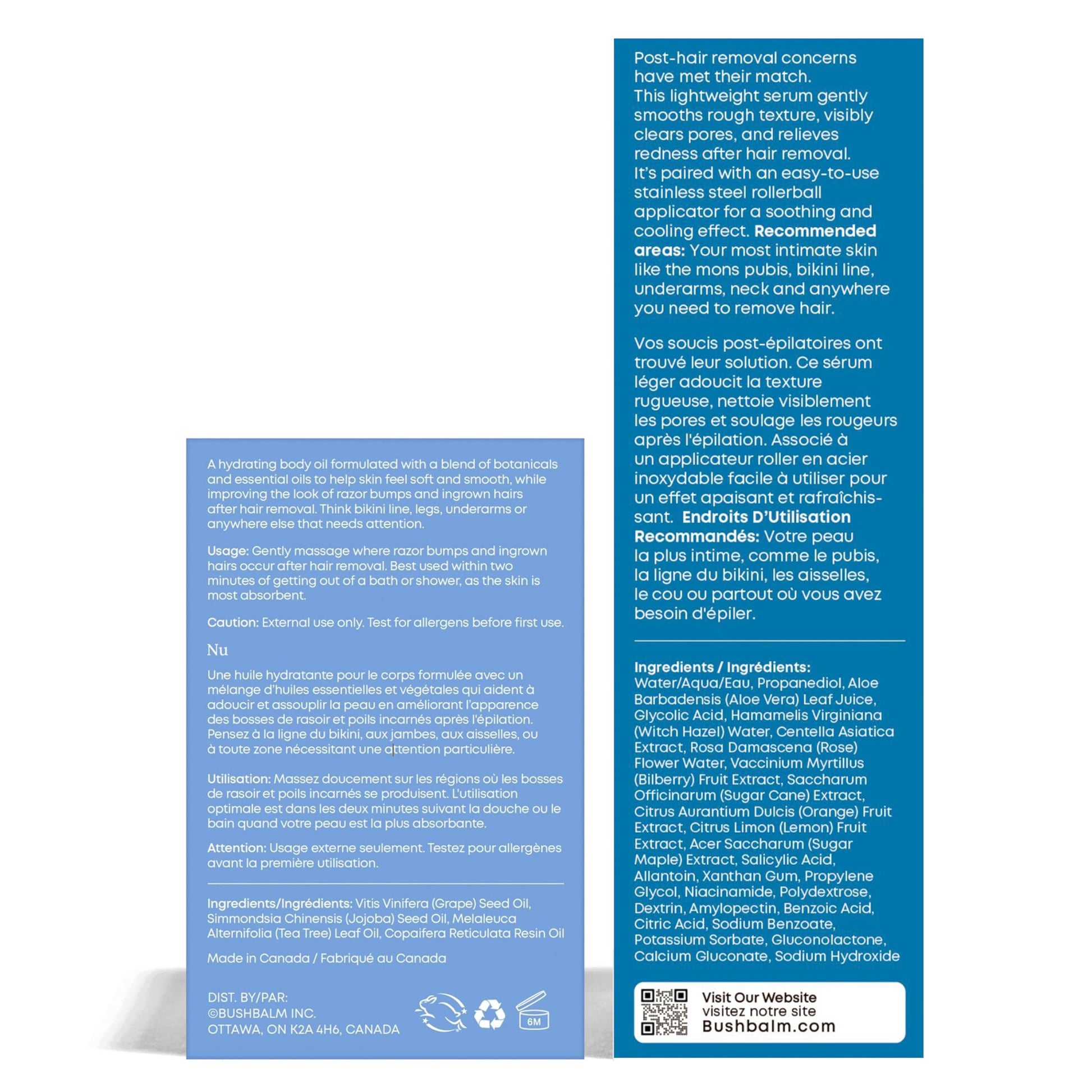 Bushbalm Ingrown Hair Roller Rescue And Nude Oil Bundle - Includes AHA & BHA - Exfoliating, Soothing, Cooling for Intimate Areas, Underarms - Helps With Razor Bumps and Ingrown Hairs, Blue (Bundle)
