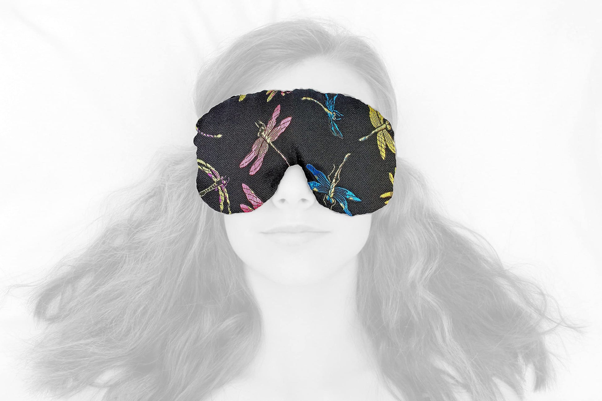 Candi Andi Handmade Opulence Yoga Eye Mask Pillow - Weighted Flaxseed Fill, Lavender Aromatherapy, Satin & Velvet, Adjustable Strap - Ideal for Meditation & Restful Sleep -Dragonfly Nite - TEMFL-DF