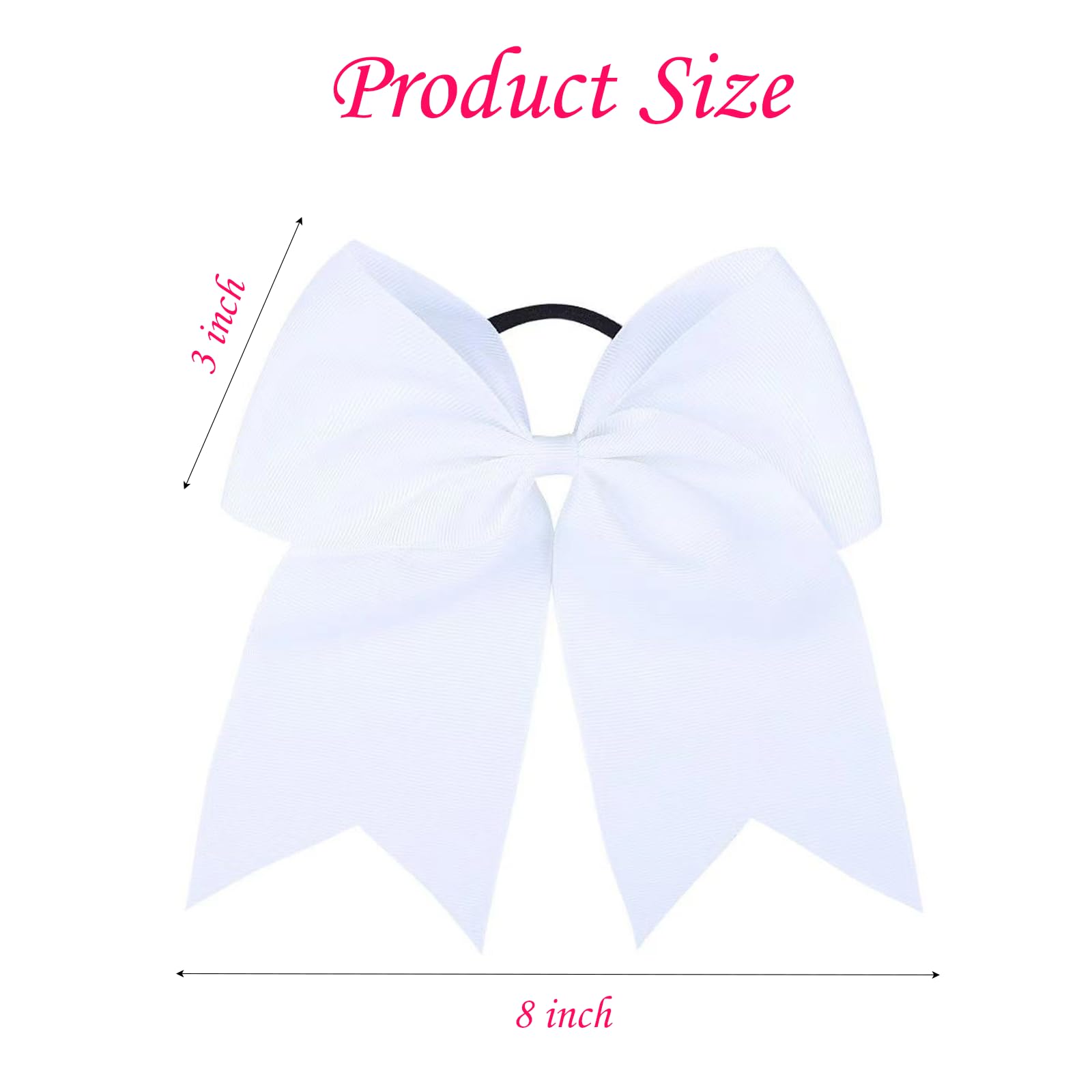 chiduerm 40Pcs 8" Large Cheer Hair Bows Grosgrain Ribbon Elastic Bands Handmade Ponytail Holder for Cheerleading Girls School College Sports (white)