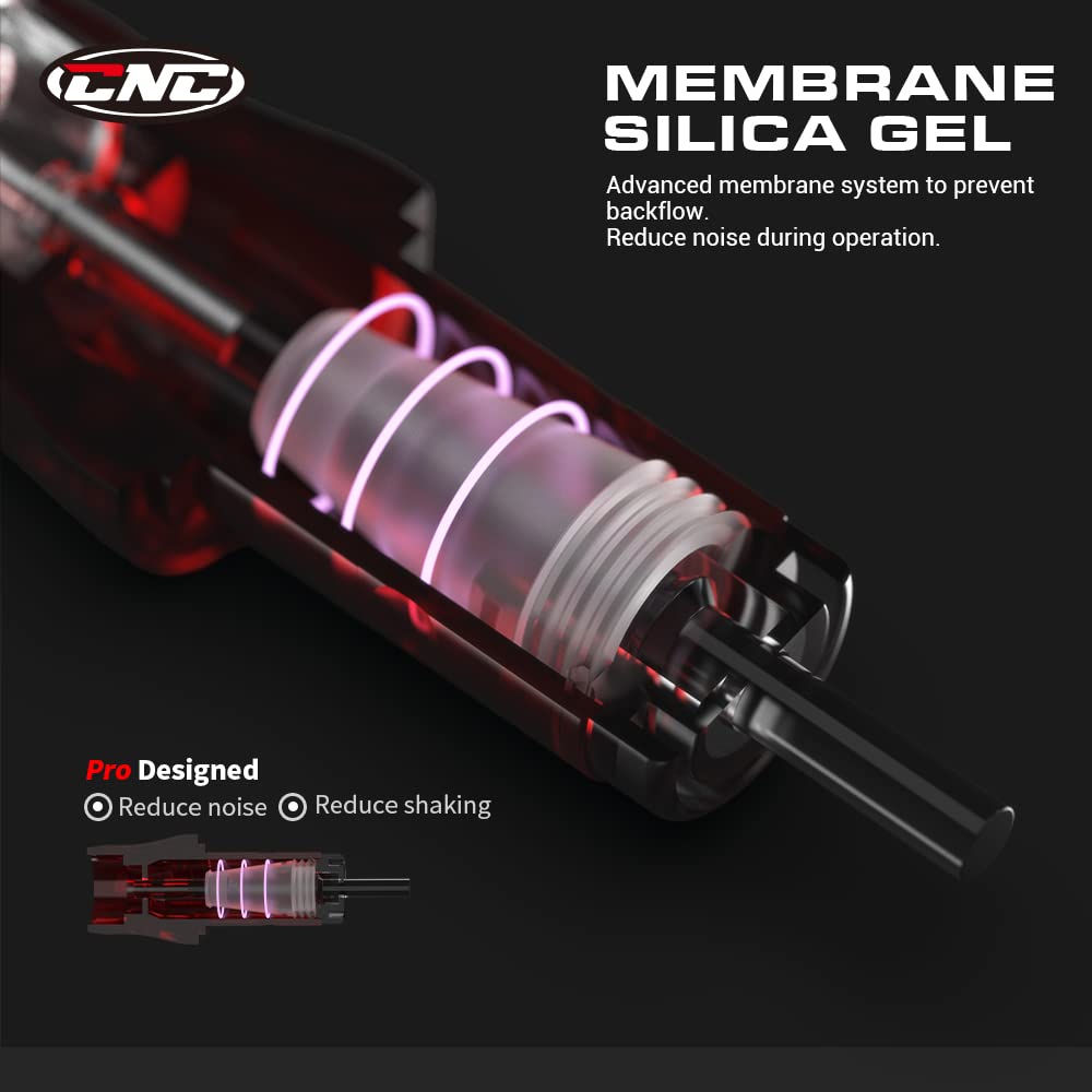 - CNC cartridges are fitted with a secure membrane, which ensures that no ink or blood can leak into the grip.Give artist finger extra comfort, less finger fatigue and absorbs those damaging vibrations while tattooing.