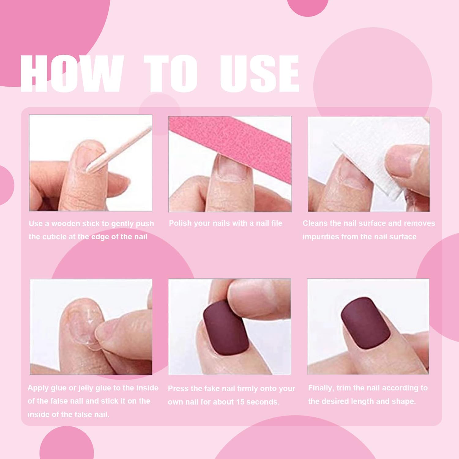 - 【Easy to use】Just select the nail piece that suits you, polish the nail bed, paste the jelly glue we give you, and then press the nail for 30 seconds to get your favorite short almond nail. Due to the limited use of jelly glue, we suggest you use your own glue.