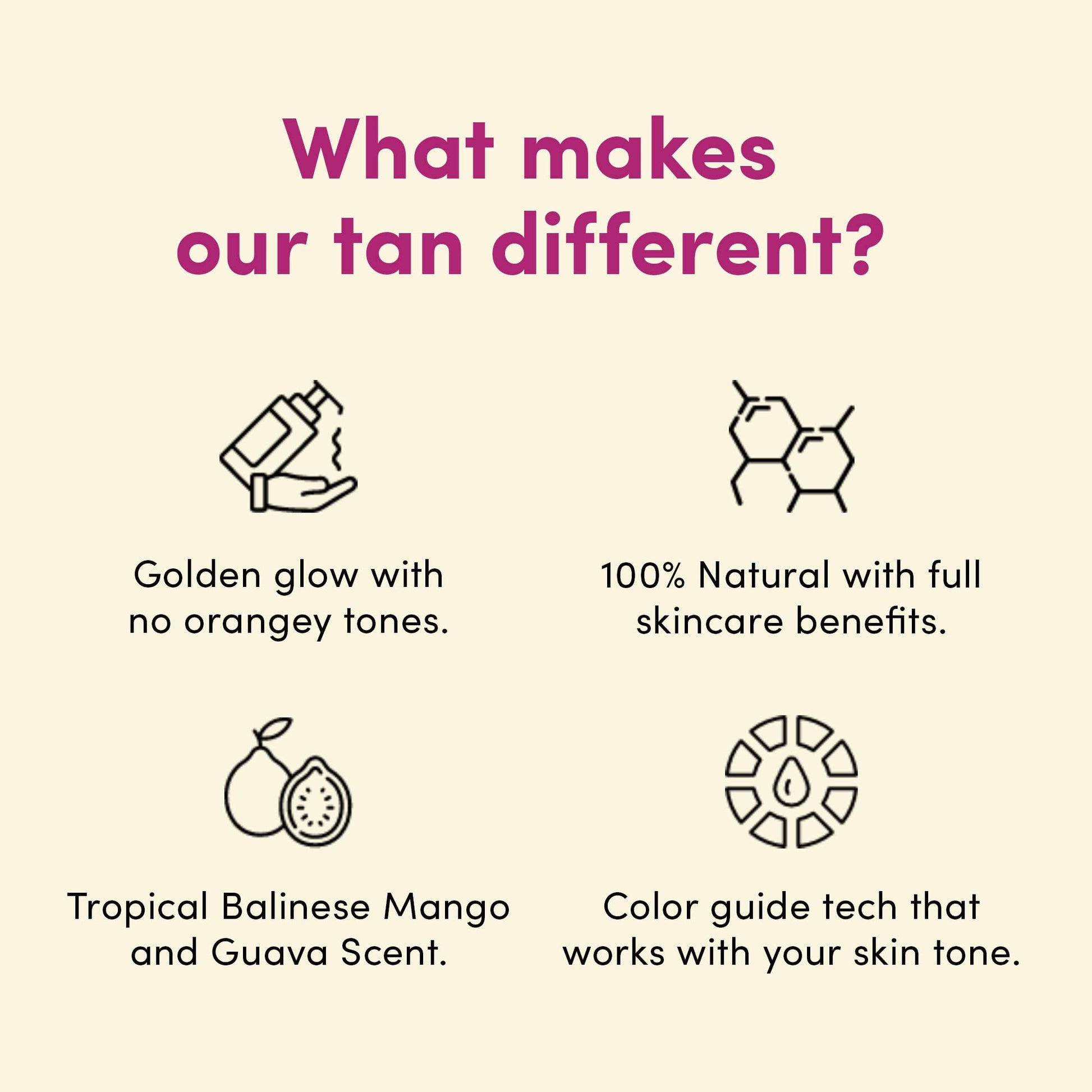 - SMELL SO GOOD, YOU’LL WANT MORE. Our Sunny Honey self tan has a tropical mango and guava fragrance that gives you the feel of an island escape. No more biscuit smells! Get ready to rock that tan glow! A little goes a long way as each bottle has roughly 260 pumps and can last approx 10-20 full body tanning sessions.