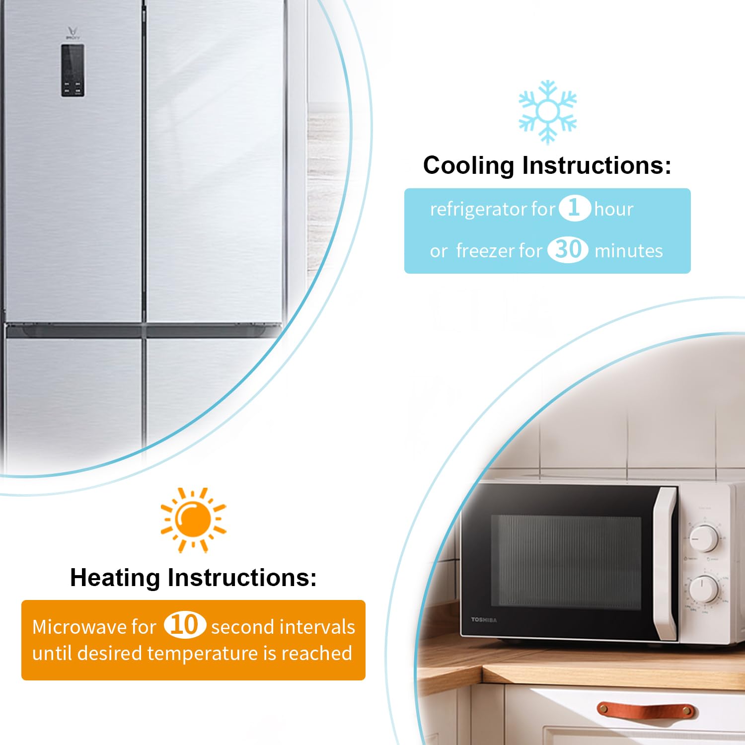 - 【Hot and cold use】Simply store the ice pack face mask or the cold compress for eyes in the freezer at -18℃ or lower temperature for at least 30 minutes or in the refrigerator for at least one hour. Heat the depuffing face mask or ice packs for the eye in microwave for 10 seconds intervals until desired temperature is achieved,the maximum heating time of the face ice mask does not exceed 30 seconds and the maximum heating time of the gel eye mask cold pack does not exceed 20 seconds.