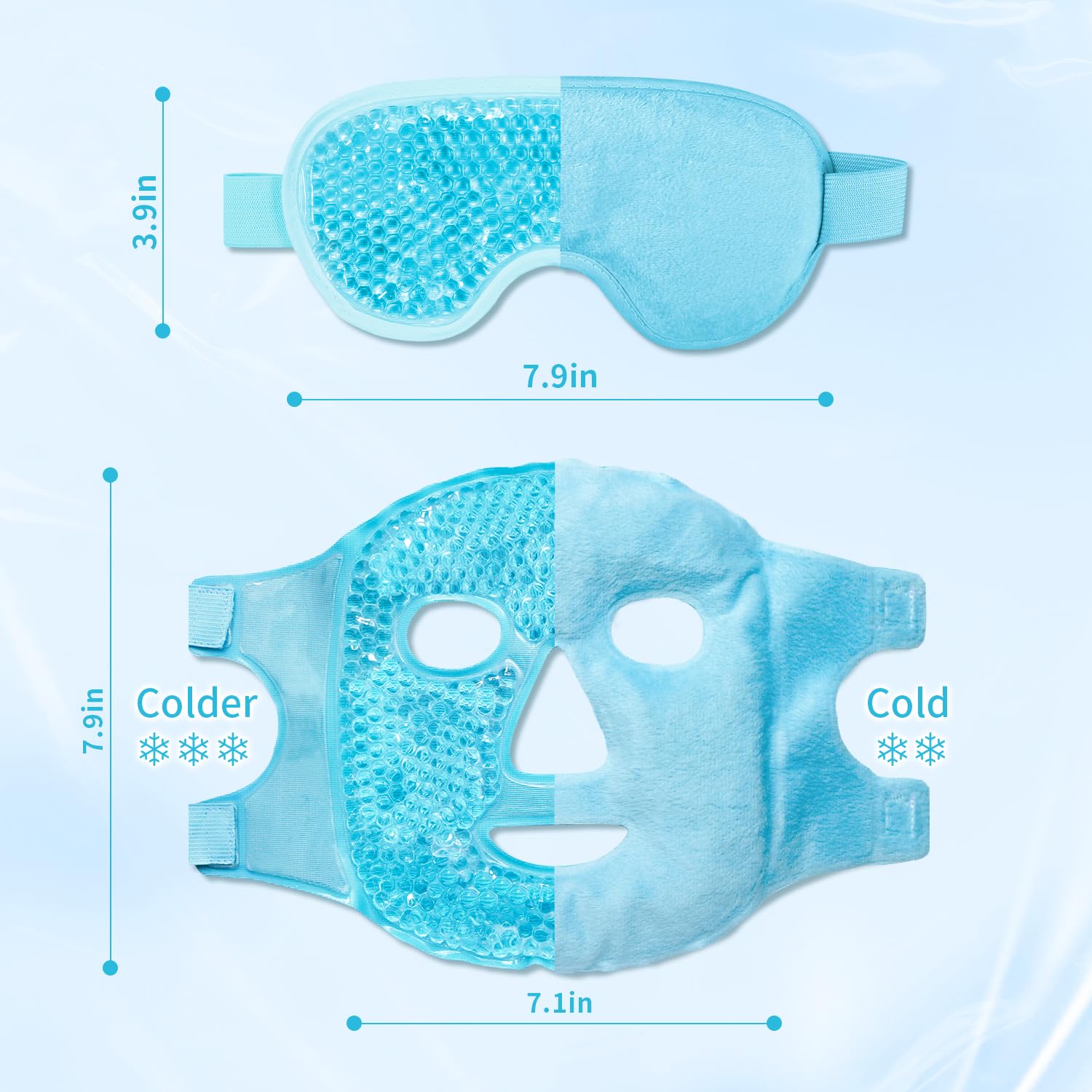 Cooling Eye Mask and Ice Face Mask Set for Reducing Puffiness, Bags Under The Eyes, Sinus, Redness, Pain Relief, Dark Circles, Migraine, and Hot Cold Use Reusable with Super Soft Lining (Blue Set)