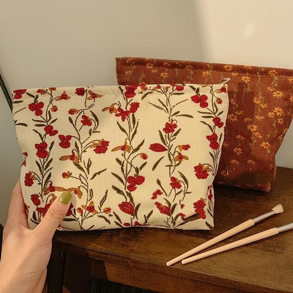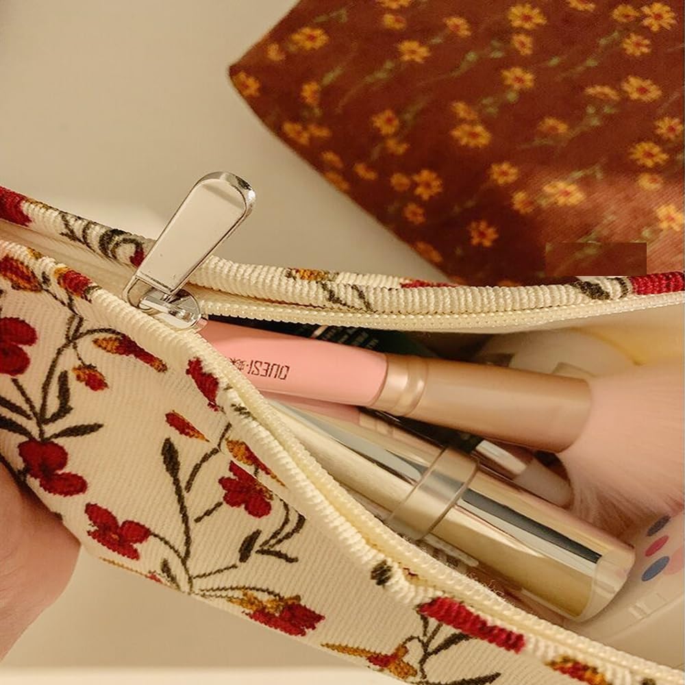 Cosmetic Bags for Women Makeup Bag Large Capacity Purse Travel Toiletry Zipper Storage Pouch Make up Brushes Organizer for Gifts (Daisy, Caramel)