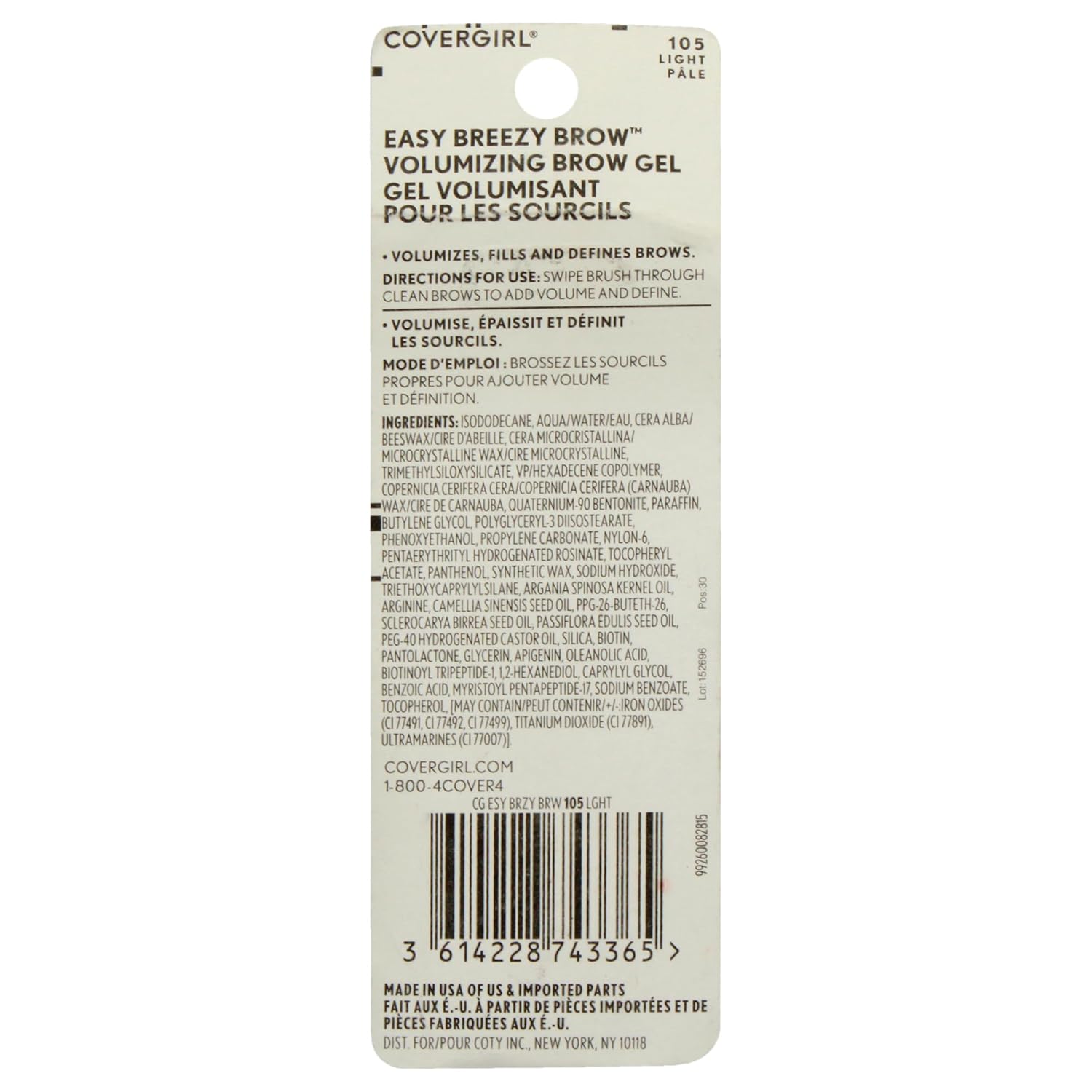 Sculpt your brows to perfection with Covergirl Easy Breezy Volumizing Brow Gel. This tinted gel comes with an ultra-precise applicator, making it easy to volumize, fill, and tame your brows. Rest assured knowing that your makeup stays up, lasting up to 24 hours. Not only that, but Easy Breezy Volumizing Brow Gel is waterproof, fade-proof, and transfer-proof as well. Best of all, this brow gel is infused with argan oil and biotin, giving your brows the nourishing touch they deserve. Pro-tip: Layer over Covergirl Easy Breezy Micro-Fine Fill + Define Eyebrow Pencil for lasting definition.
