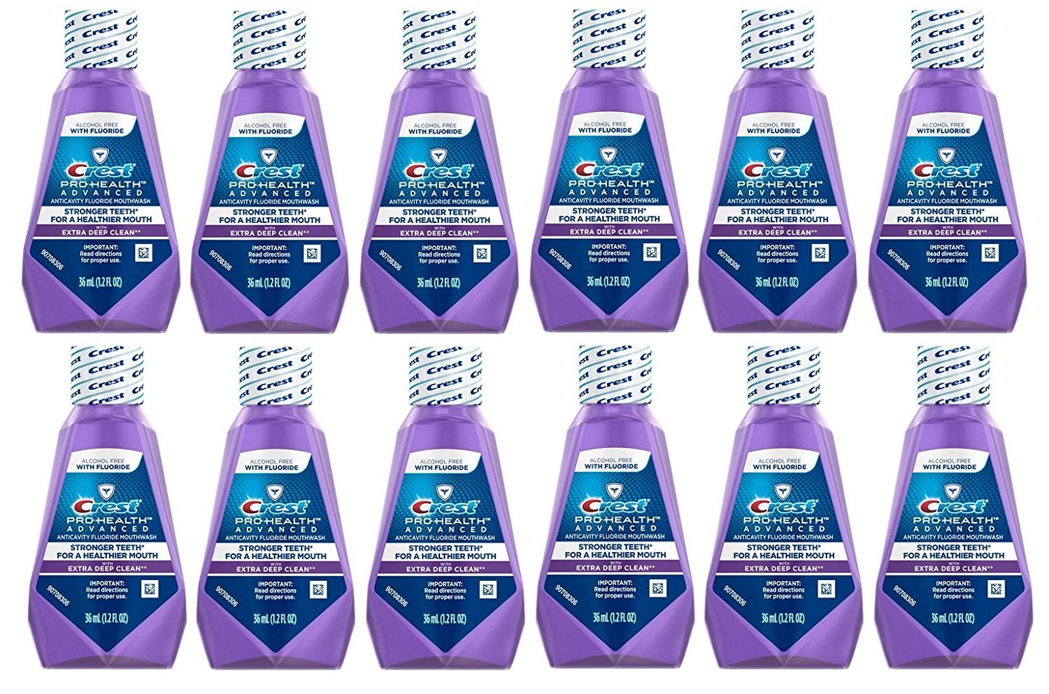 Crest Pro-Health Advanced Anticavity Fluoride Mouthwash/Rinse, Alcohol Free, Travel Size 36 ml,1.22 Fl Oz (Pack of 12)