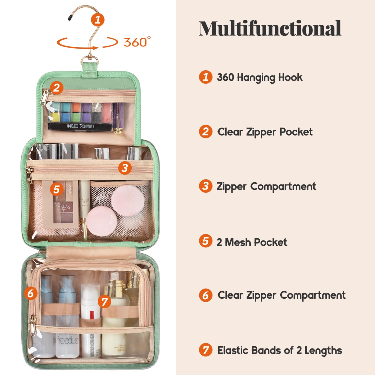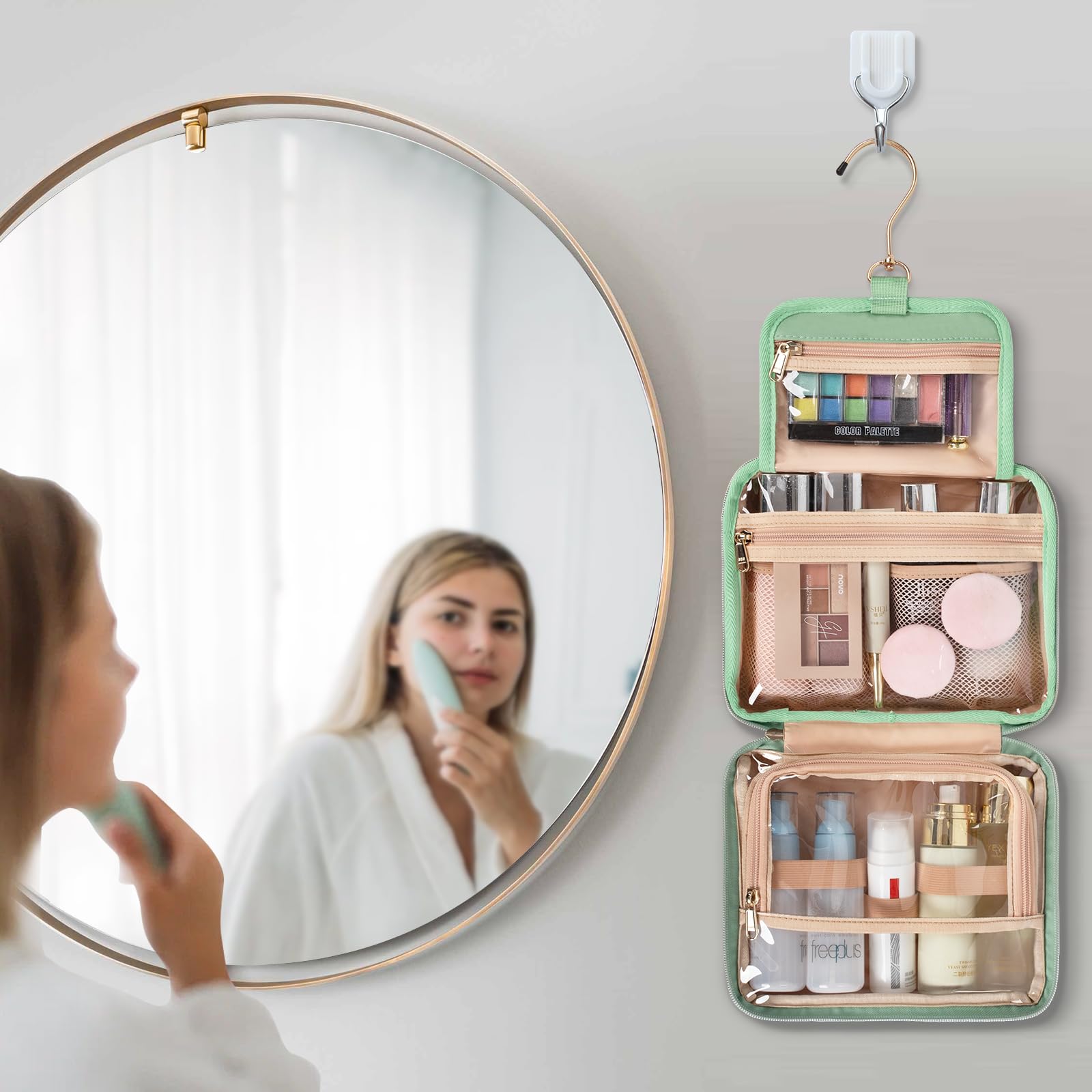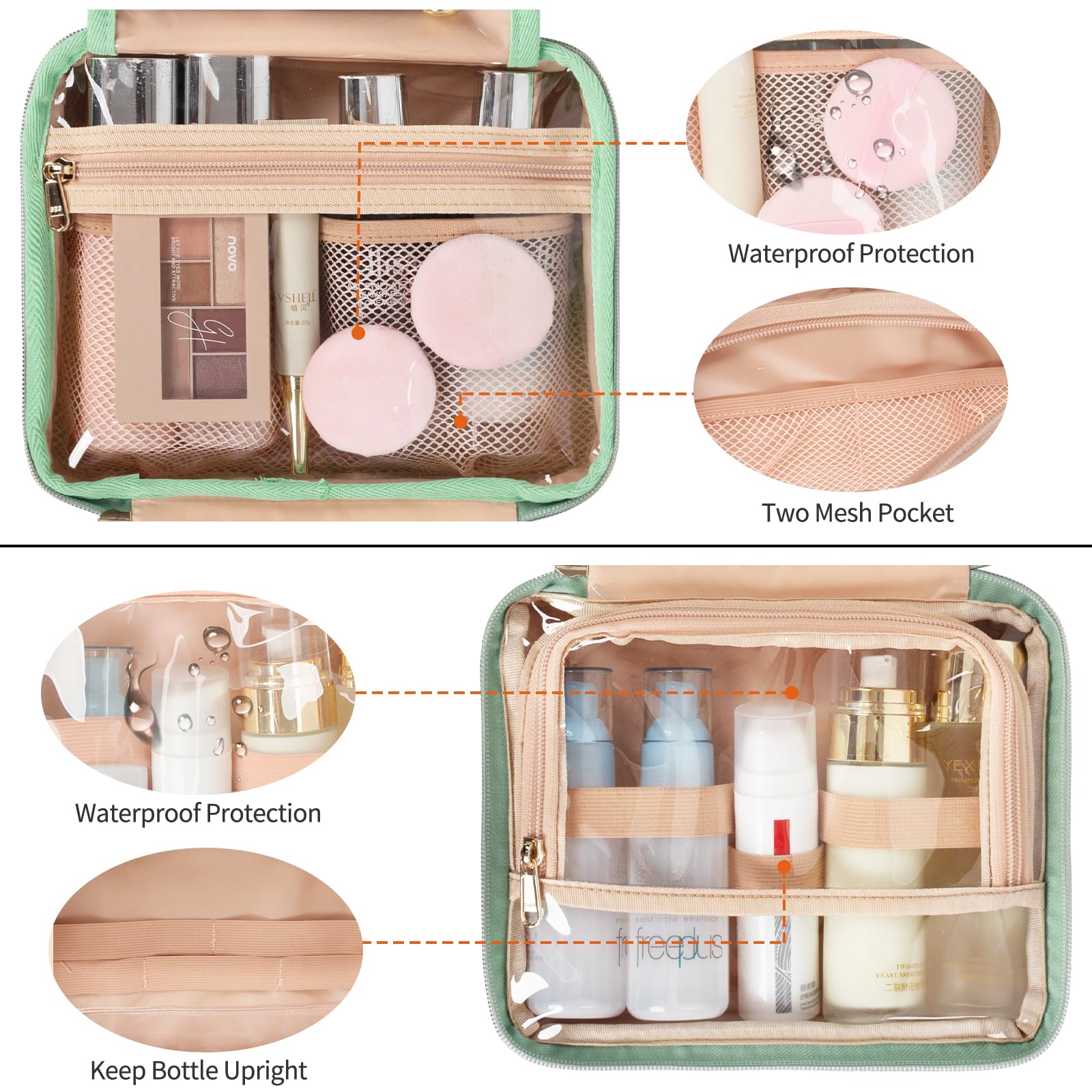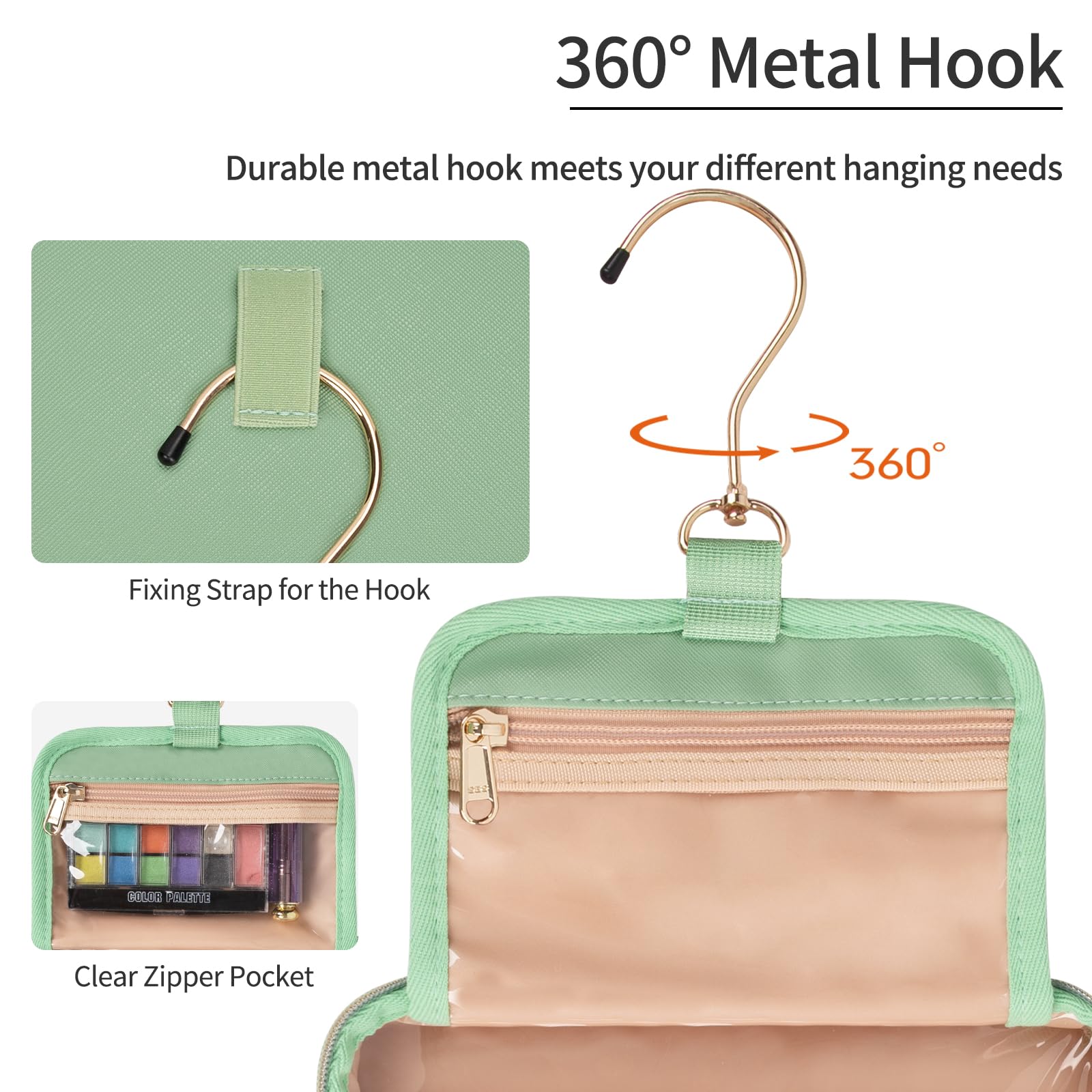 - CONVENIENT HANGING - Hanging toiletry bag for women, stow-away 360 degree swivel non-slip metal hook for versatile hanging options; Two-way zipper closure for quick access; Carry handle doubles as its hanging strap.