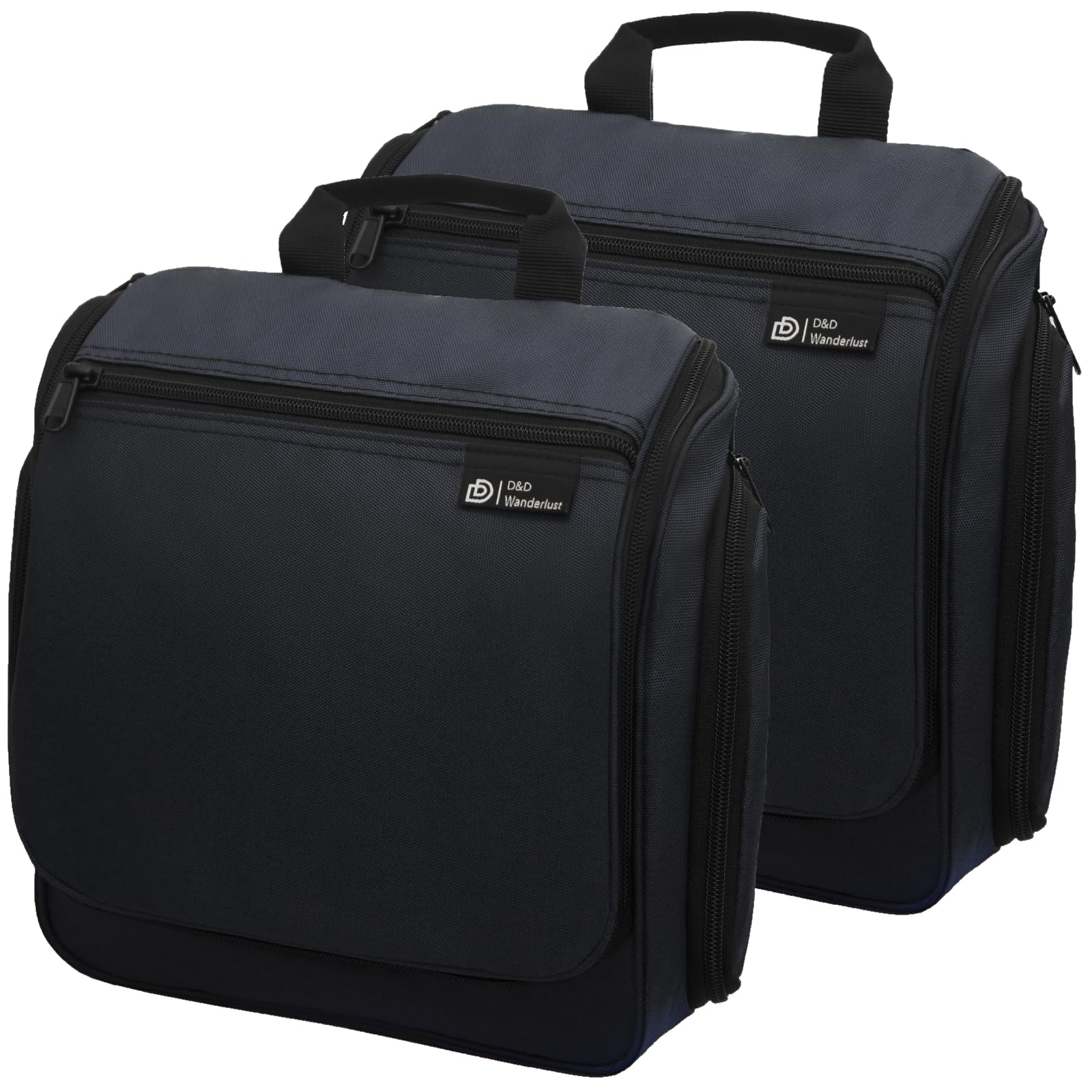 D&D Hanging Travel Toiletry Bag for Men and Women – Cosmetics, Makeup and Toiletries Organizer Kit with 10 Compartments, XXL Metal Swivel Hook, Water-Resistant Nylon