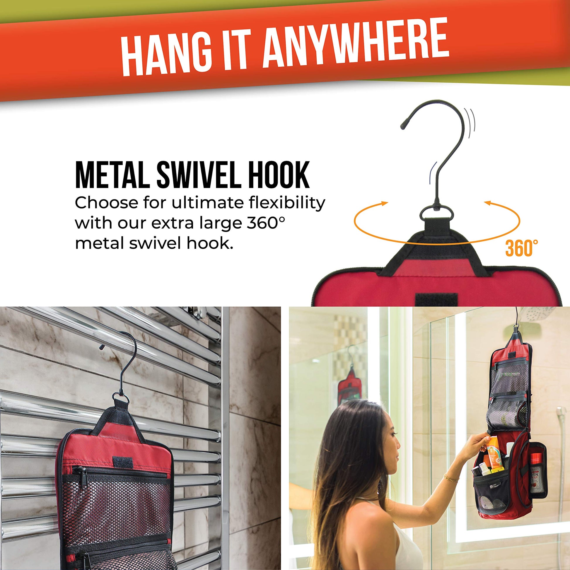 - Convenient Hanging Hook: The XXL metal swivel hook allows you to hang the bag anywhere, saving valuable counter space. It's perfect for use in hotels, bathrooms, or even on a camping trip.