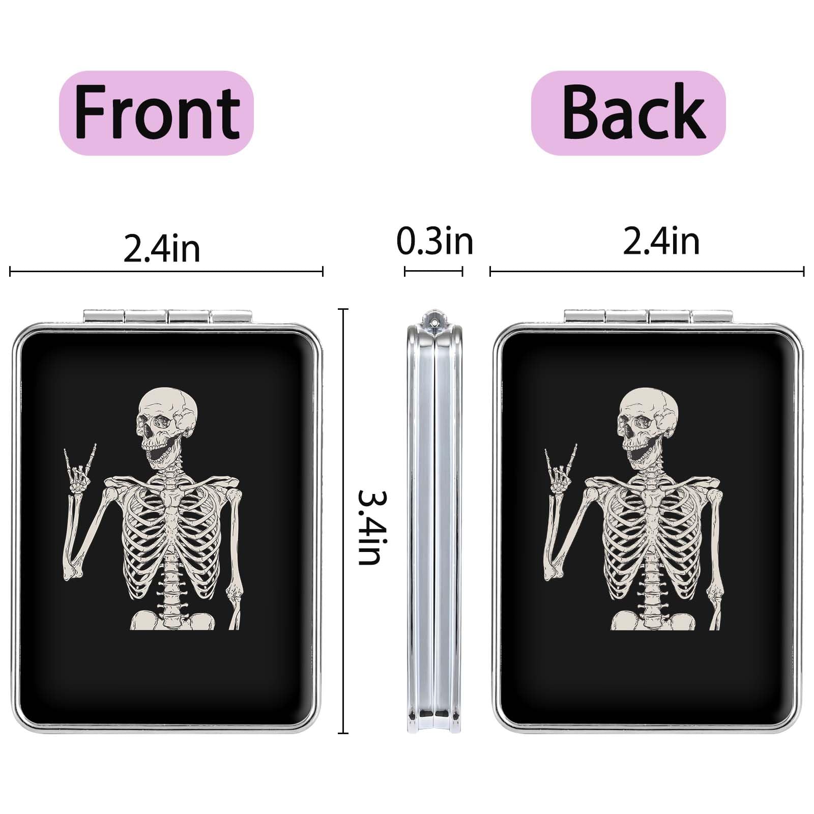 dcdcee Pocket Mirror, Small Travel Mirror with Magnification, Portable Double-Sided Magnifying Cosmetic Mirror for Daily (Skull)