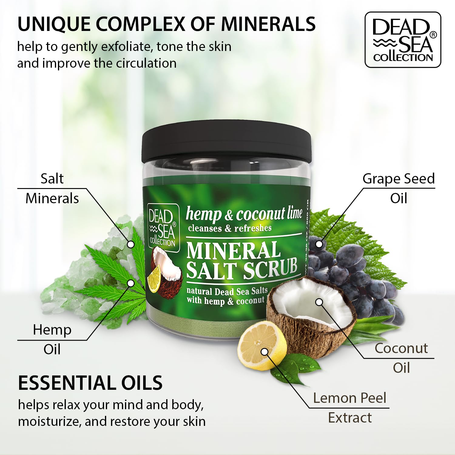 Dead Sea Collection Hemp & Coconut Lime Salt Scrub – Exfoliating Body Scrub for Women – Moisturizing and Nourishing Skin – with Pure Oils and Dead Sea Minerals (23.28 Oz)