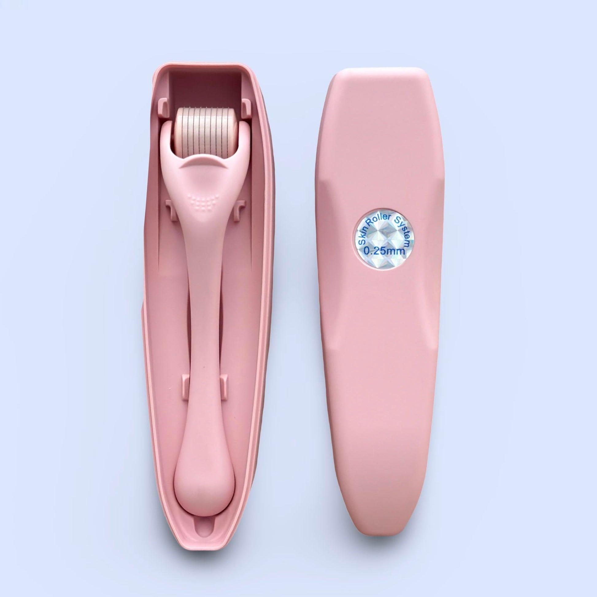 Derma Roller Microneedling Roller, 0.25mm Stainless Steel, Roller for Face, Beard, Hair, Body, Microneedle Derm Stamp with Storage Case | For Women and Men | (Matte Baby Pink)