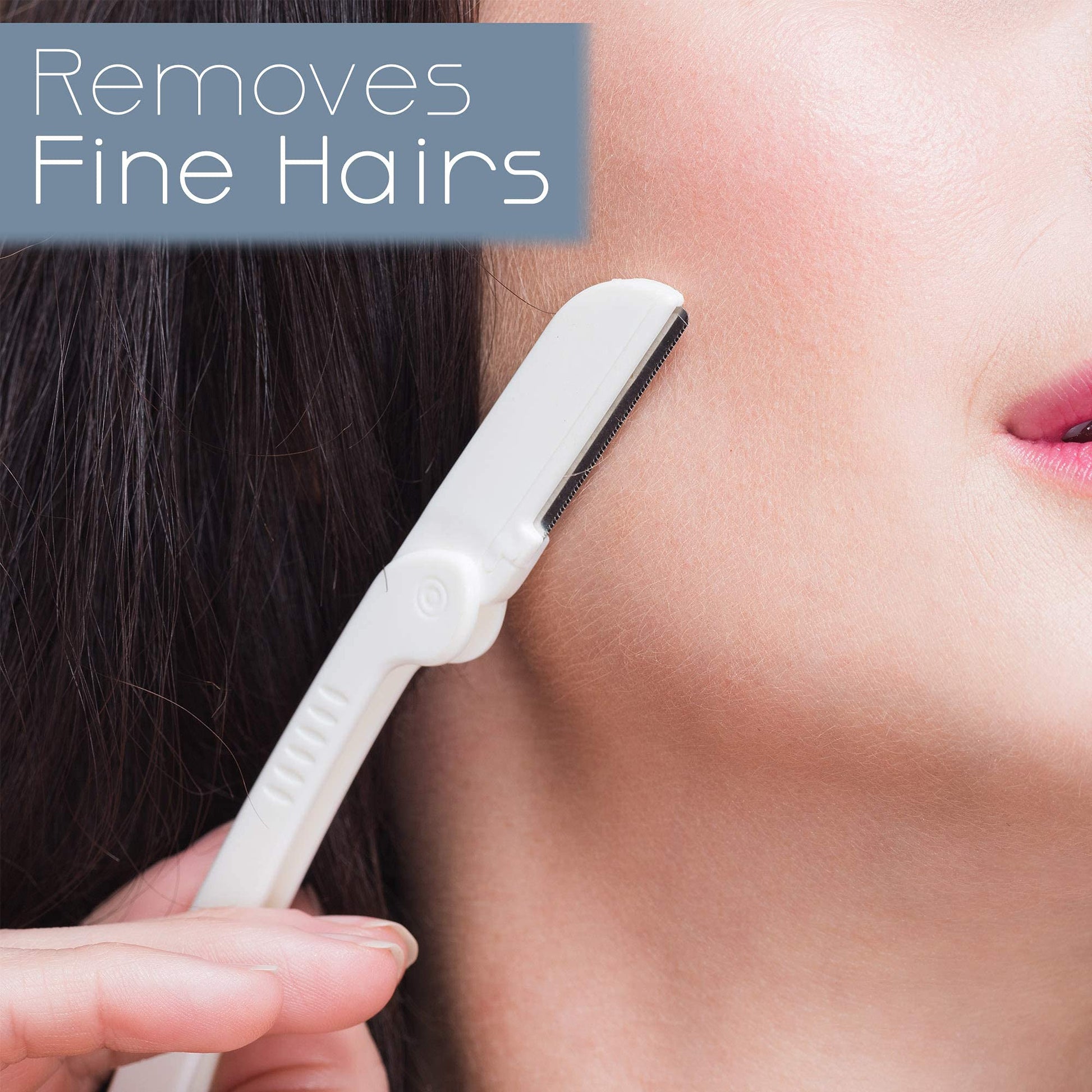 - Bye-Bye Peach Fuzz: Quickly remove any facial hair in minutes. The small, foldable blade makes it easy to safely transport the razor in any makeup bag or purse so it’s there to use whenever a touch-up is required.