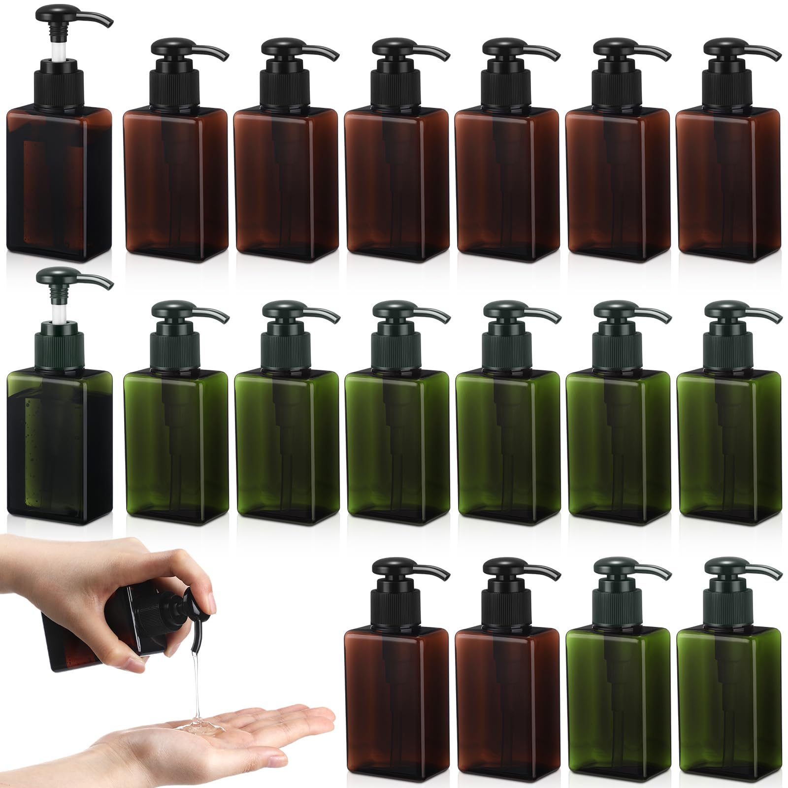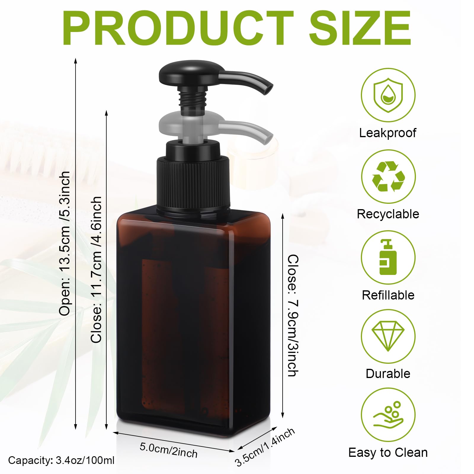 - Package Includes: each package includes 12 pcs travel bottles for toiletries in 2 colors, green and brown, these colored empty pump bottles have a capacity of about 3.4 oz/100ml and measure about 2 inches/50mm*1.4 inches/ 35 mm in bottom; About 4.6 inches/ 117 mm in bottle height, lightweight and portable, ideal choice for camping or travelling