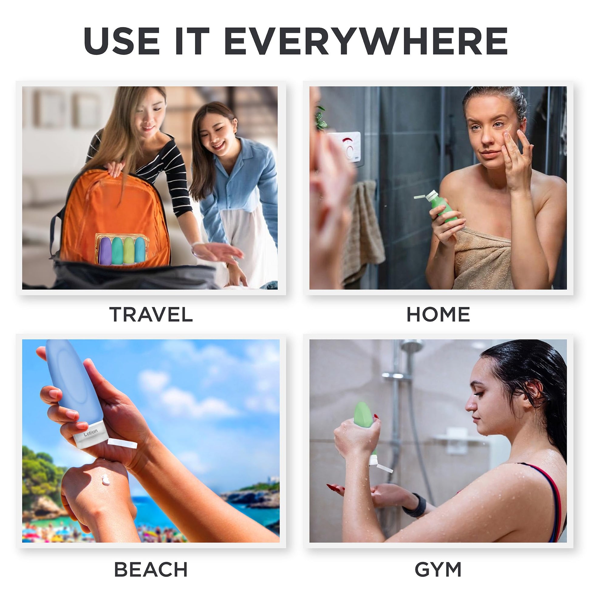 - Leak Proof Design and Flow Control - Drip free dispenser valve releases bottle contents only when the soft, flexible, squeezable silicon travel tube body is pressed. Each flip top lid has 3 leakproof walls to protect your personal items in your bag from leaks or spills.