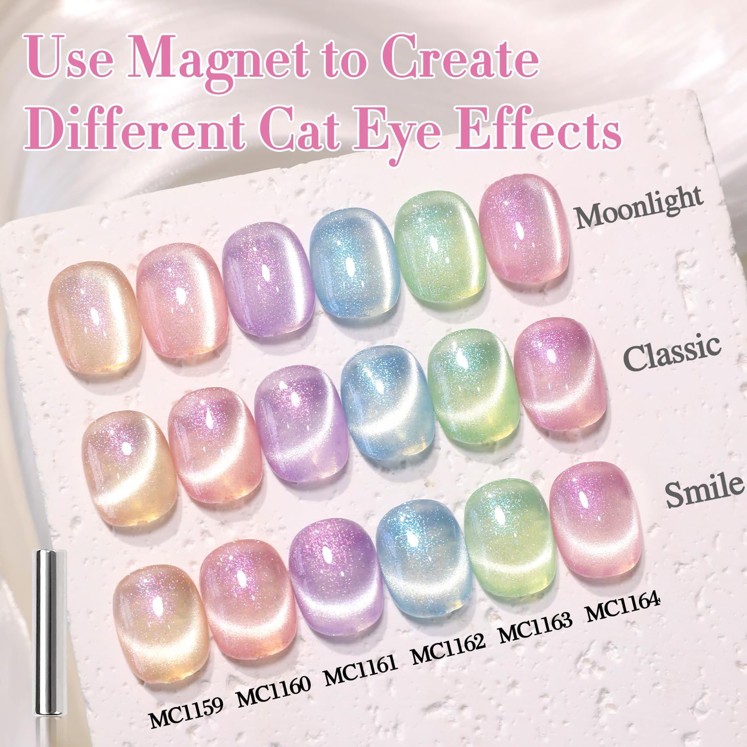 - Same Color Same Bollte Cat Eye Gel Nail Polish : Double Rhythm cat eye gel nail polish kit includes 1 color 15ml / 0.5 fl.oz gel nail polish. The cat eye gel can be combined with different bacse colors arbitrarily, you can get different colors nail art.You can use different base coat to creat different sytles.