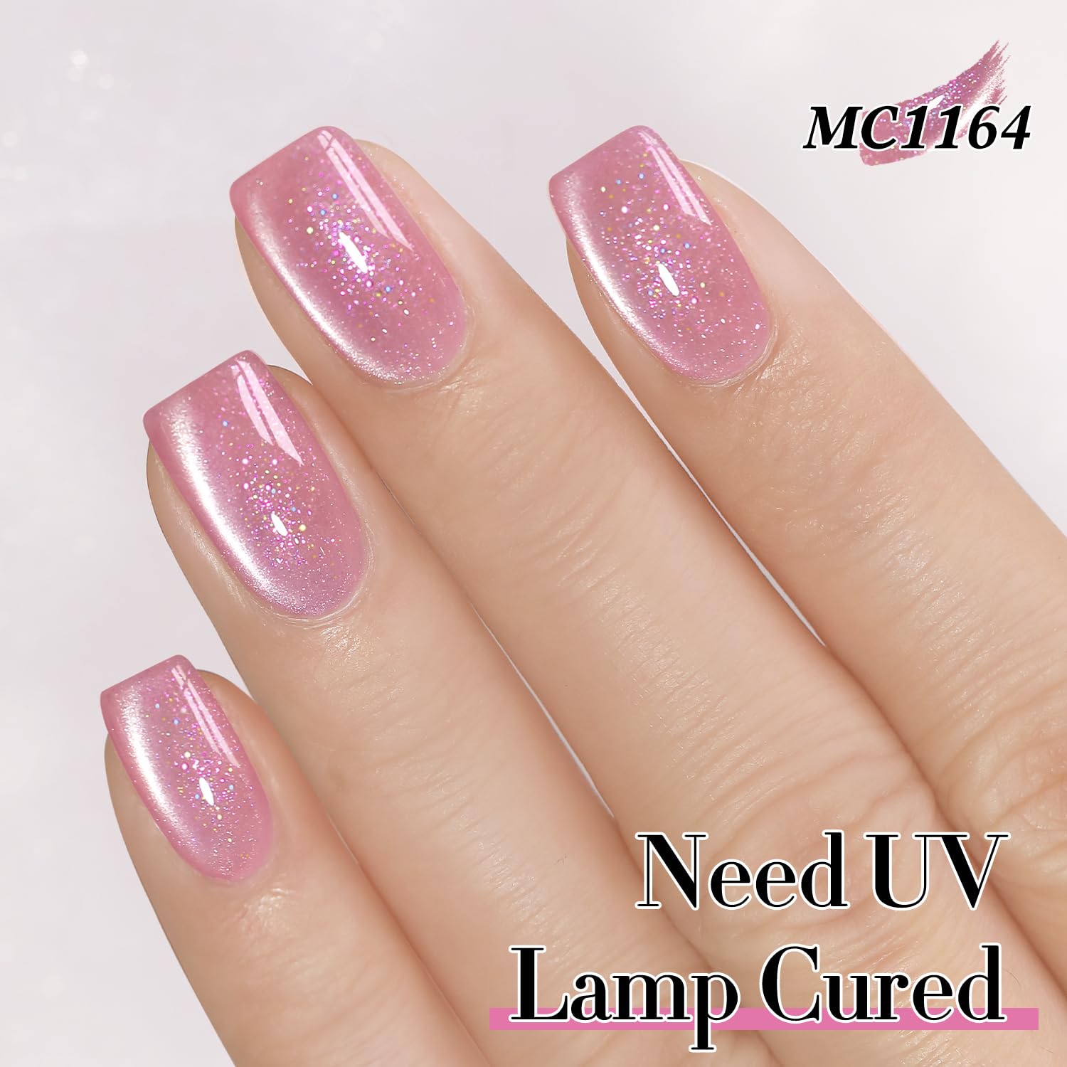 Double Rhythm 0.5 Oz Cat Eye Gel Polish with Magnet Same Color Same Bottle Holographic Glitter Shimmer Translucent Color Salon Soak Off Magnetic Nail at Home (Mermaid Pink-MC1164)
