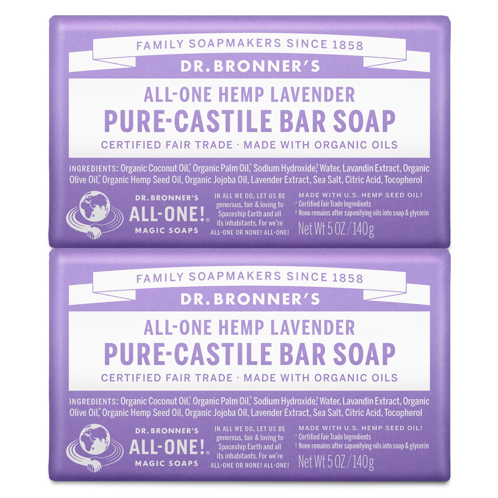 Dr. Bronner's Pure-Castile Bar Soap - Made with Regenerative Certified Organic Oils - For Face, Body, Hair- Gentle on Sensitive Skin Soap Bar for Men & Women Lavender, 2 pack, 10oz