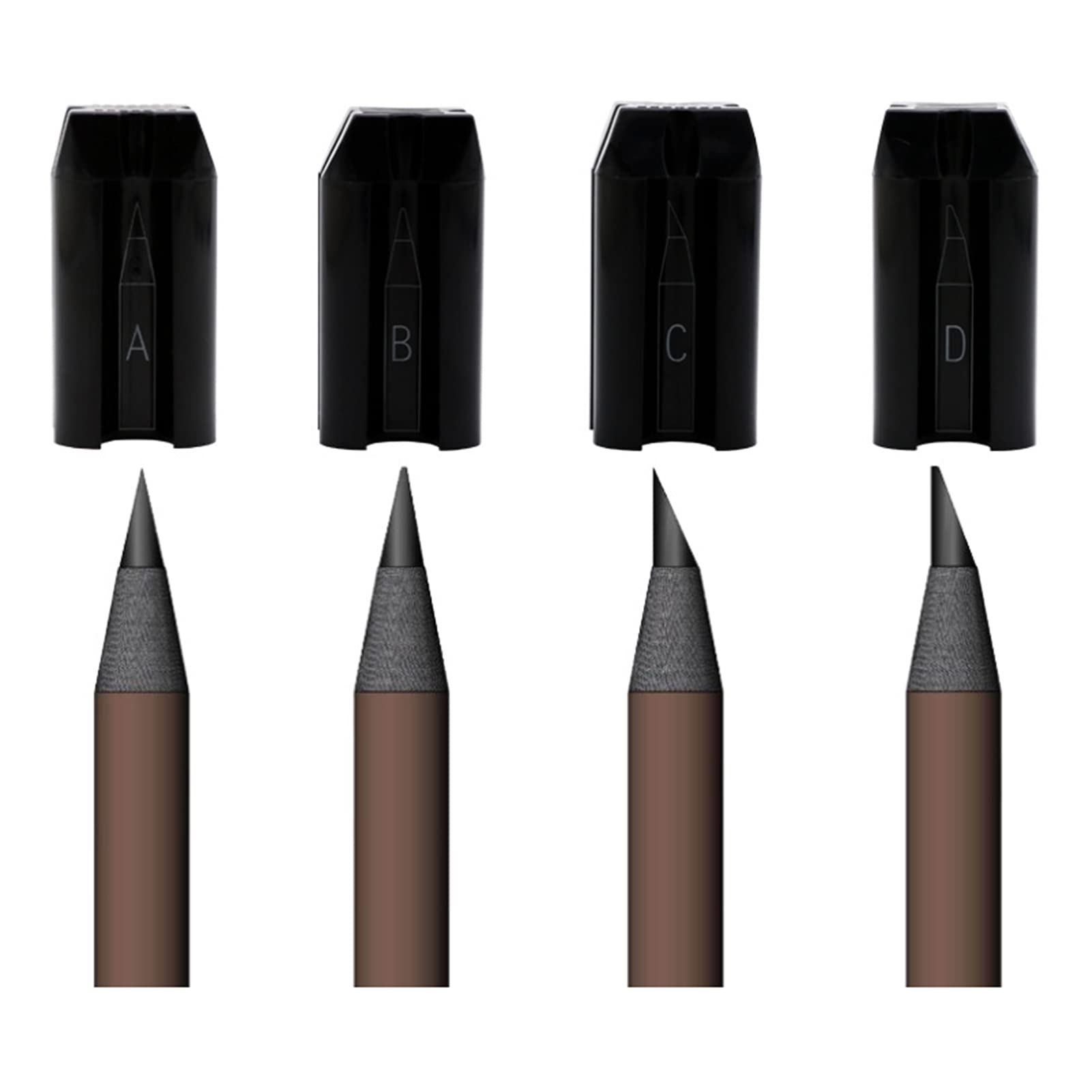 - EASY TO USE, IMPROVE EFFICIENCY ⭆ The 4-in-1 duckbill sharpener allows you to quickly sharpen the eyebrow pencil into the same shape every time. The sharpened eyebrow pencil is straight and pointed, which makes the thrush easier to use and improves the efficiency of the thrush.