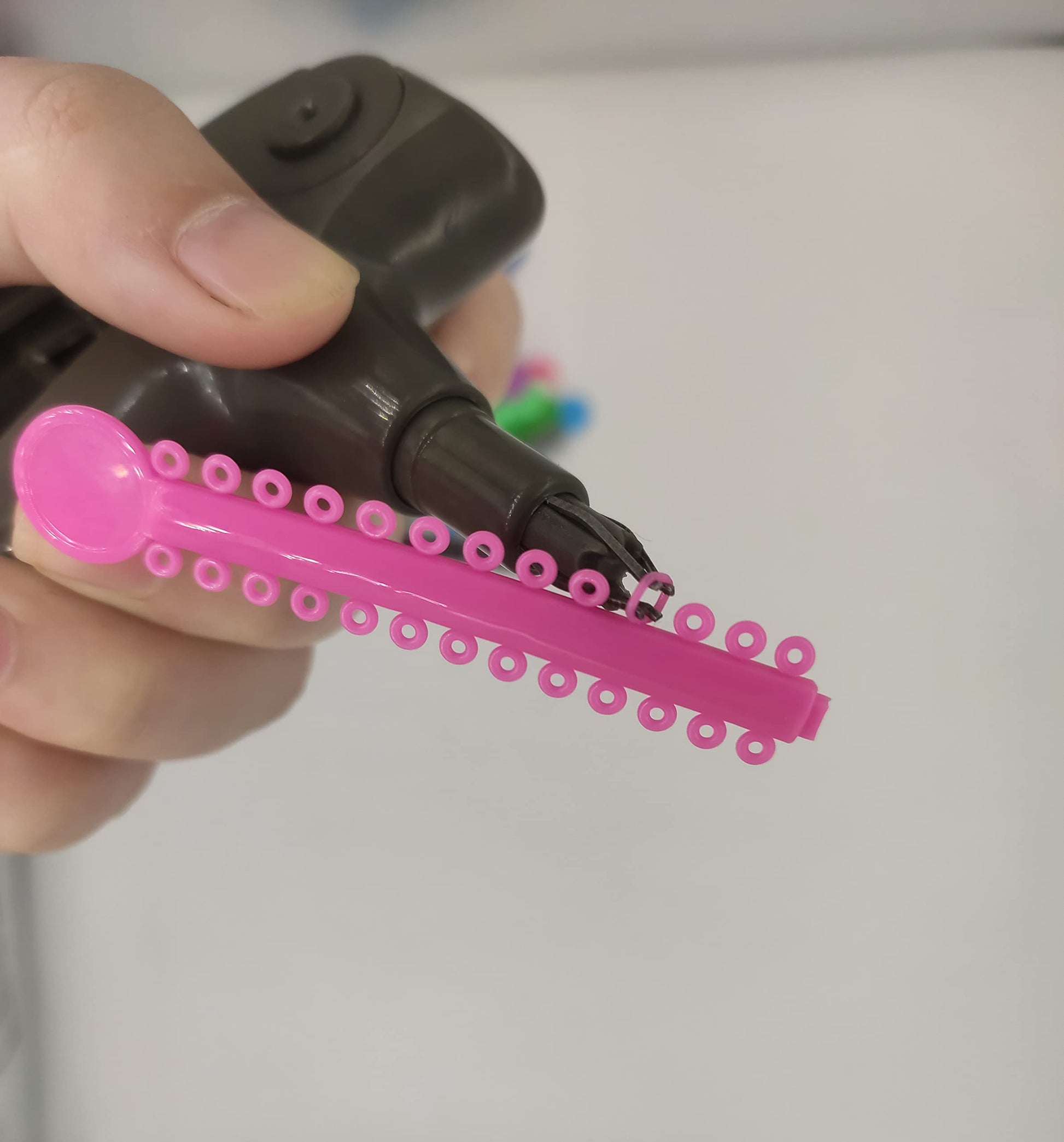 - The dental orthodontic colorful ligation strip is made of high quality rubber material and has good elasticity. The ligature tie gun is made of sturdy and durable plastic material.