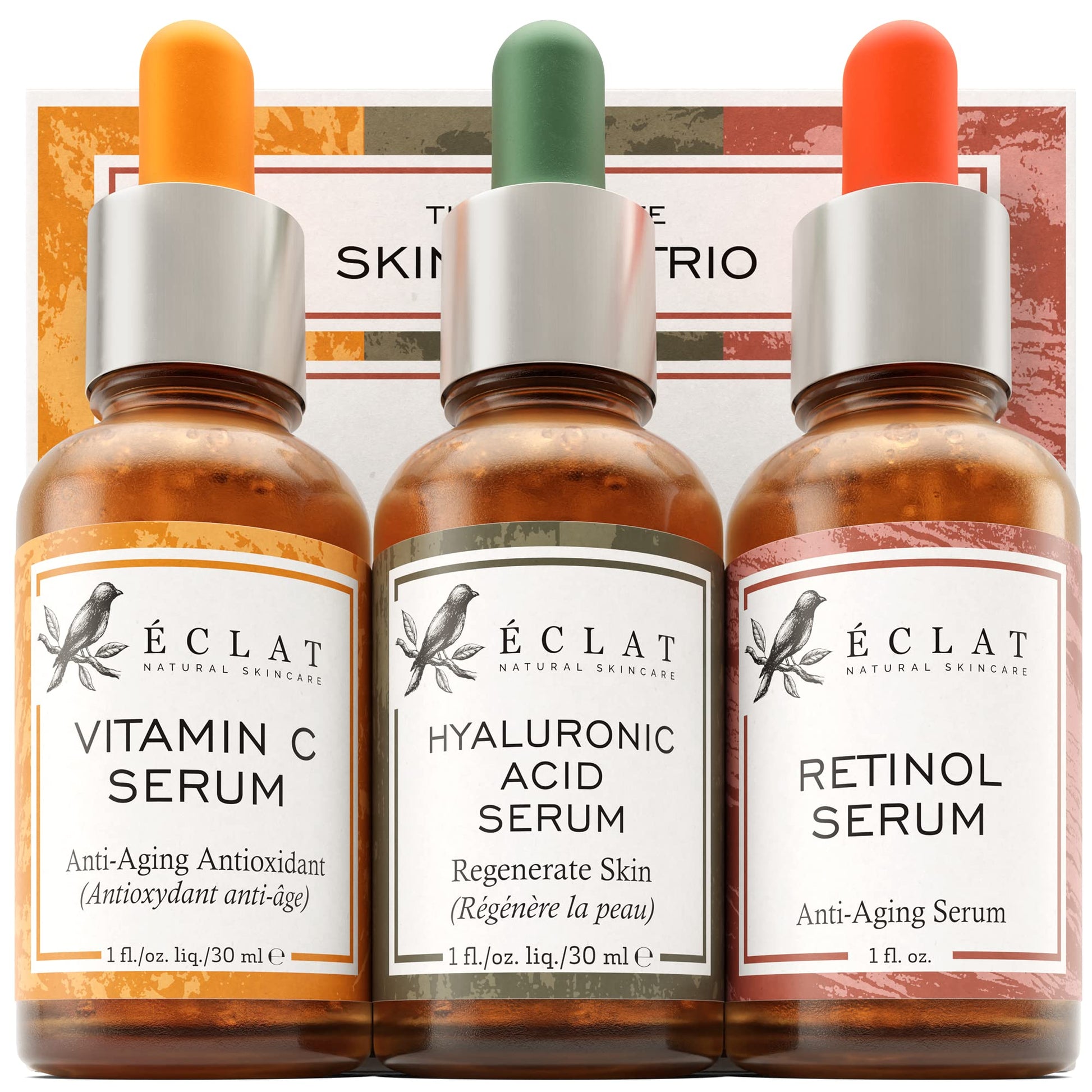 Eclat Skincare 3-Pack Face Serums - Vitamin C, Hyaluronic Acid, Retinol for Anti-Aging, Hydrating Care
