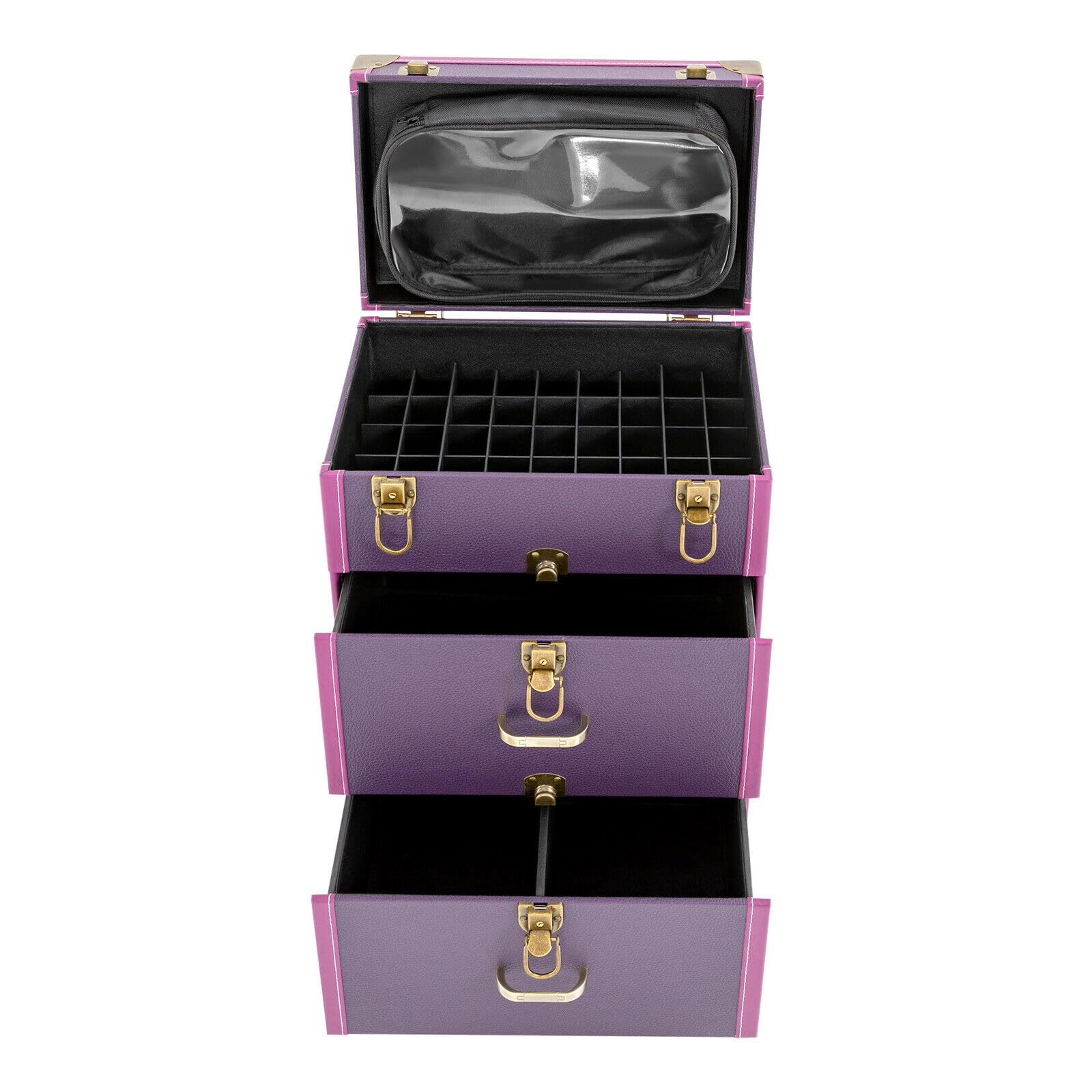 - Categorized Storage: The 3-tier and compartment designs, cubicles, and a large clear pocket on the lid give this case a large capacity to hold your daily cosmetics and makeup tools in a categorized way, allowing you to quickly find what you want. And the dividers are removable for organizing different sized bottles