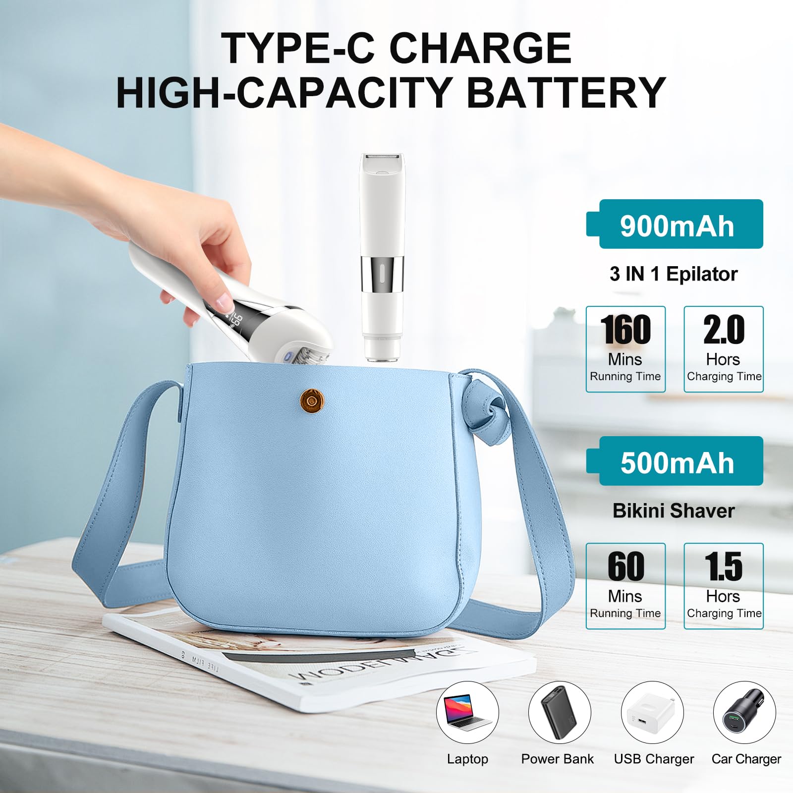 - Versatile 5-in-1 Design: Epilator,trimmer, callus remover, bikini trimmer, facial hair trimmer and cleansing brush all in one compact device for full-body hair removal and grooming.