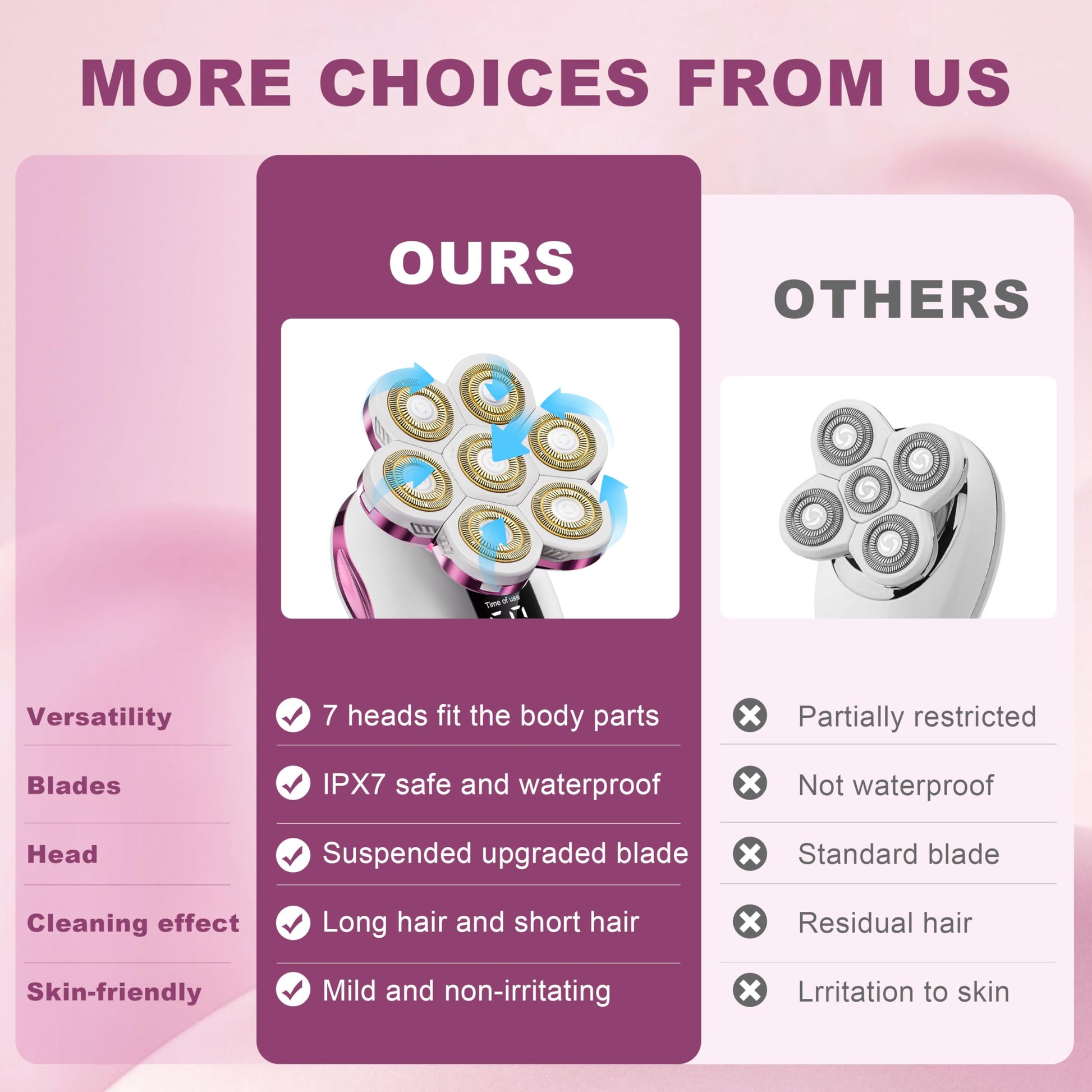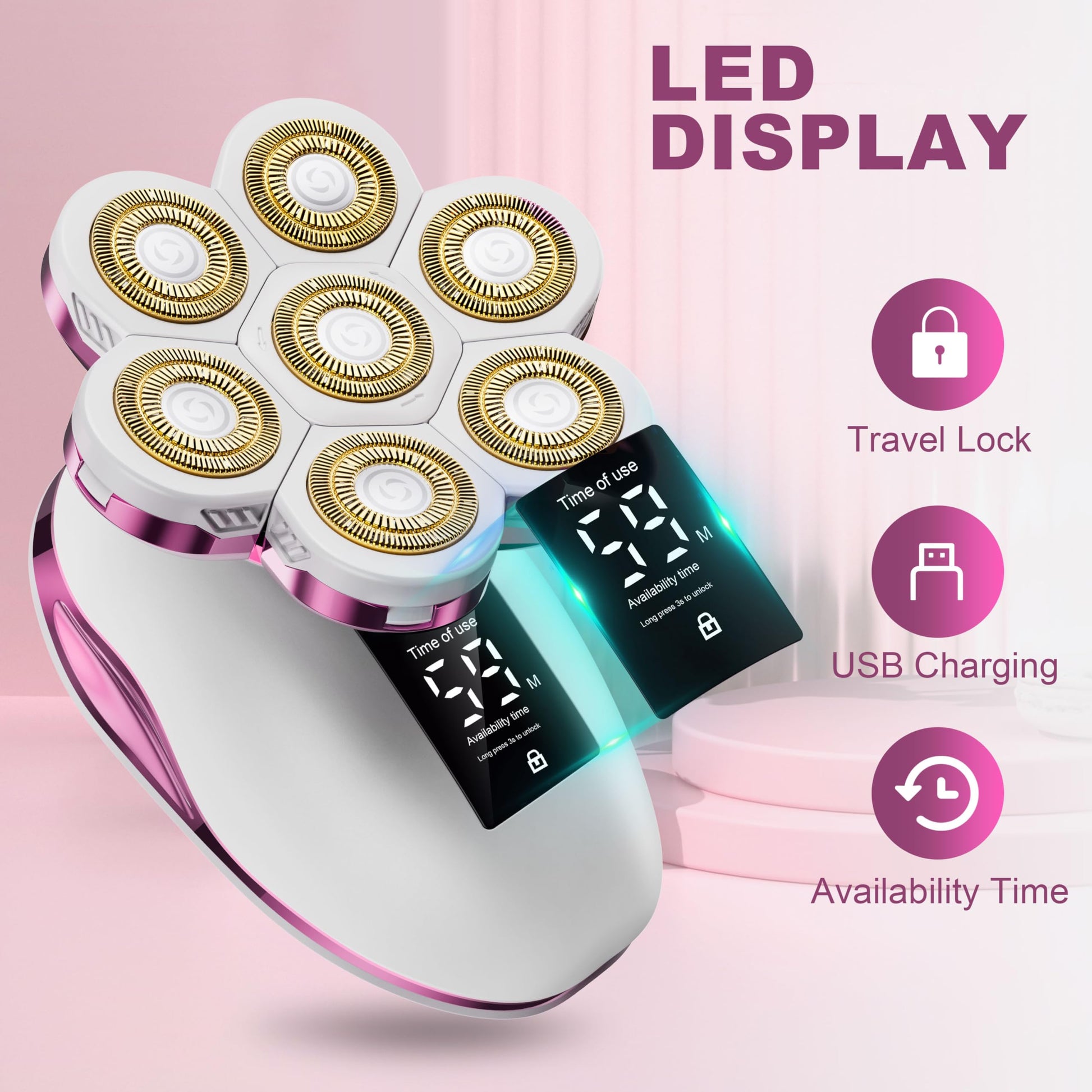- 【Women's Grooming Kit】The shaver for women offers a comprehensive solution for all your grooming needs. It includes a 7D rotary shaver, hair trimmer piece, you can effortlessly achieve hair-free smooth skin without any irritation